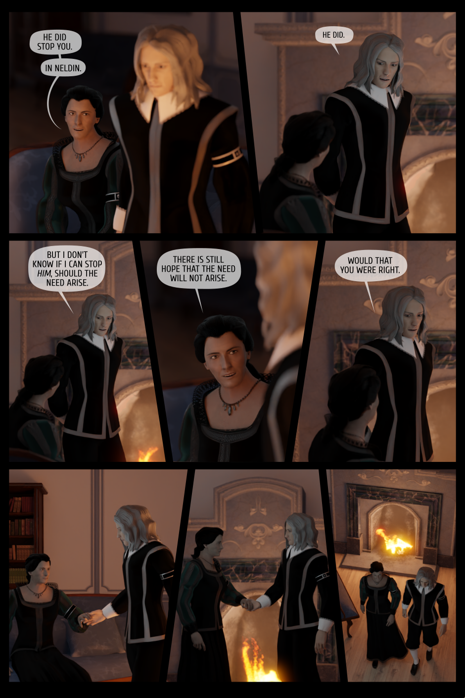 ...And here we are, at the end of Chapter V. There will be a break of several weeks now (We're about to get some very complex scenes and my computer is... in need of some serious repairs. Or, more likely, a replacement.) But I am planning to launch Chapter 6 no later than November 14, 2022. Maybe even sooner, depending on how those repairs go.