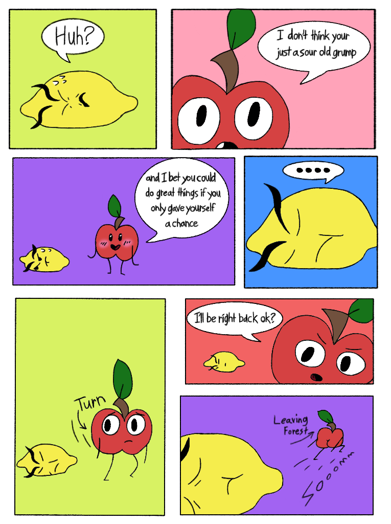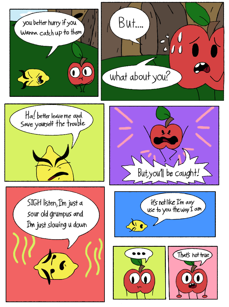 Apple gives lemon a pep talk and then looks for the others!