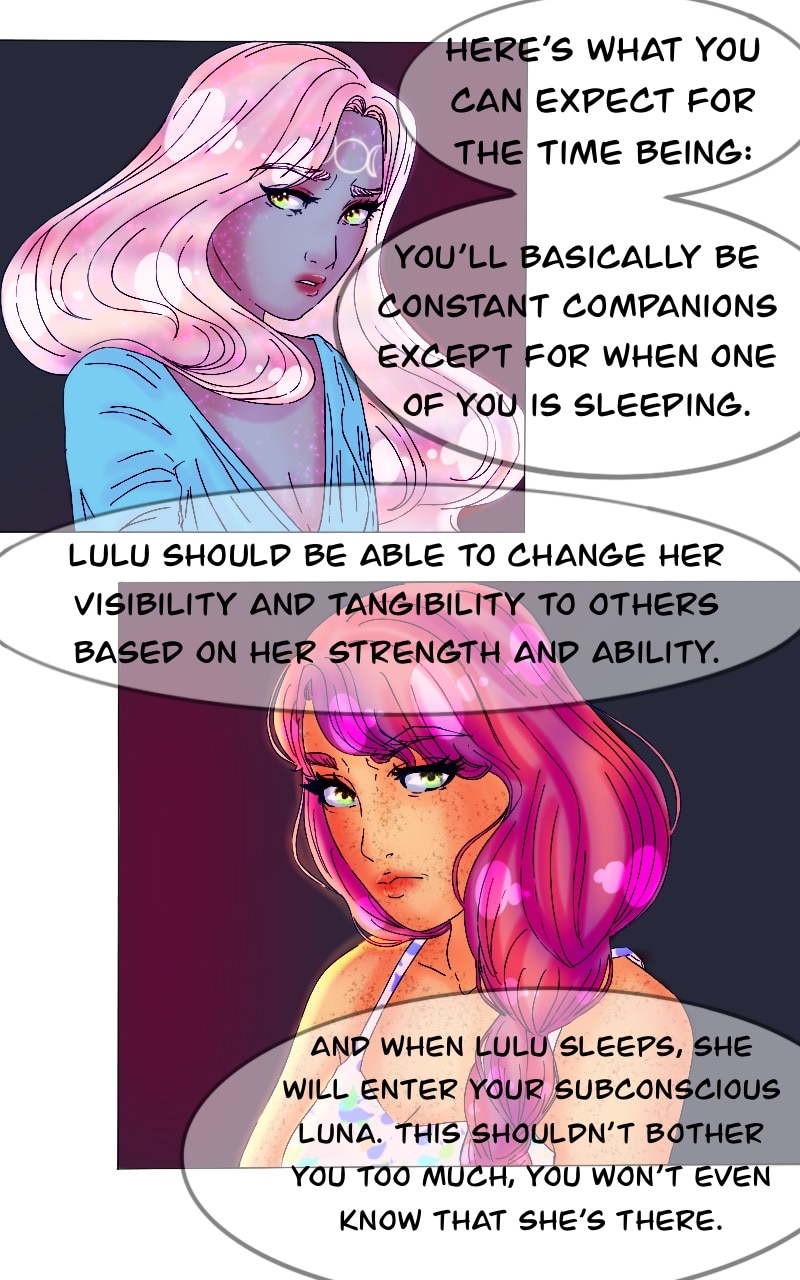 Luna is faced with confronting the reality that gods and other deities exist while she tackles trauma from her past. After an unorthodox confrontation, Luna finds herself sharing her body with... the moon goddess?! While attempting to save her planet, she will learn how to save herself.