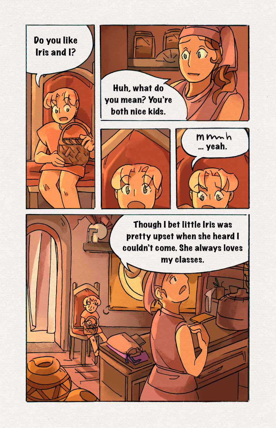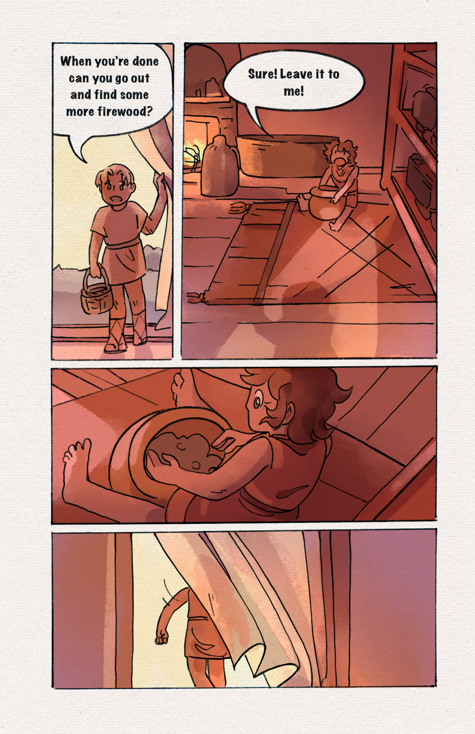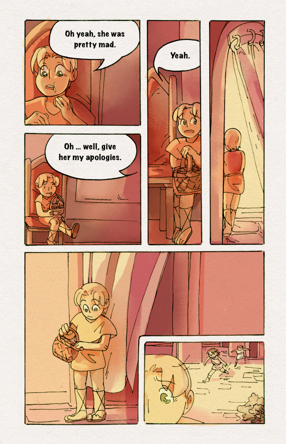 It's been a little difficult to keep the drawing quality consistent, it just makes me more grateful to be able to use colors to help pull the panels together. I'm hoping that all those people that say drawing comics helps perfect skills were telling the truth. One more update until chapter 1 is complete. Yippee!
