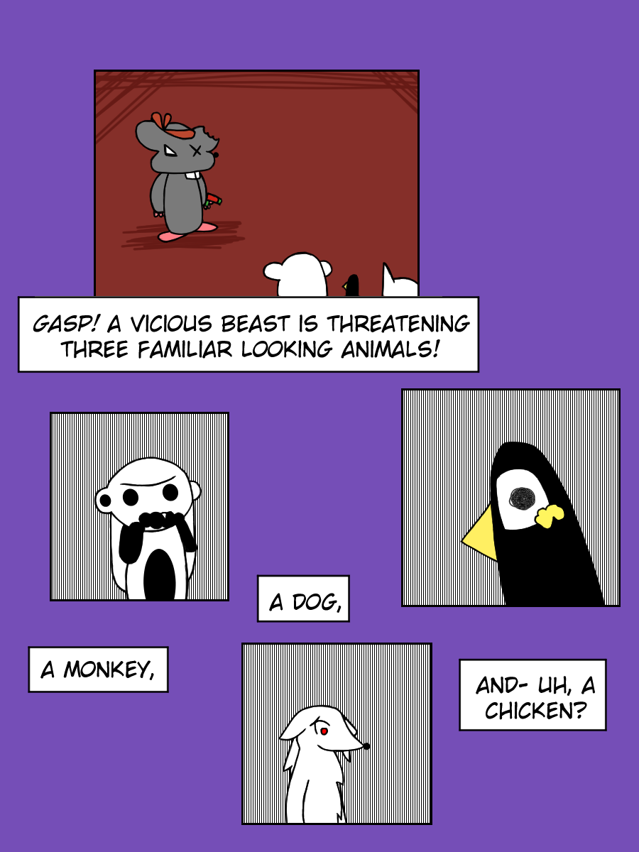 I think the only reason I made this one was pure boredom, I was at a point where I had no idea what to draw with my OCs so I just tried making a random comic where stuff happens.