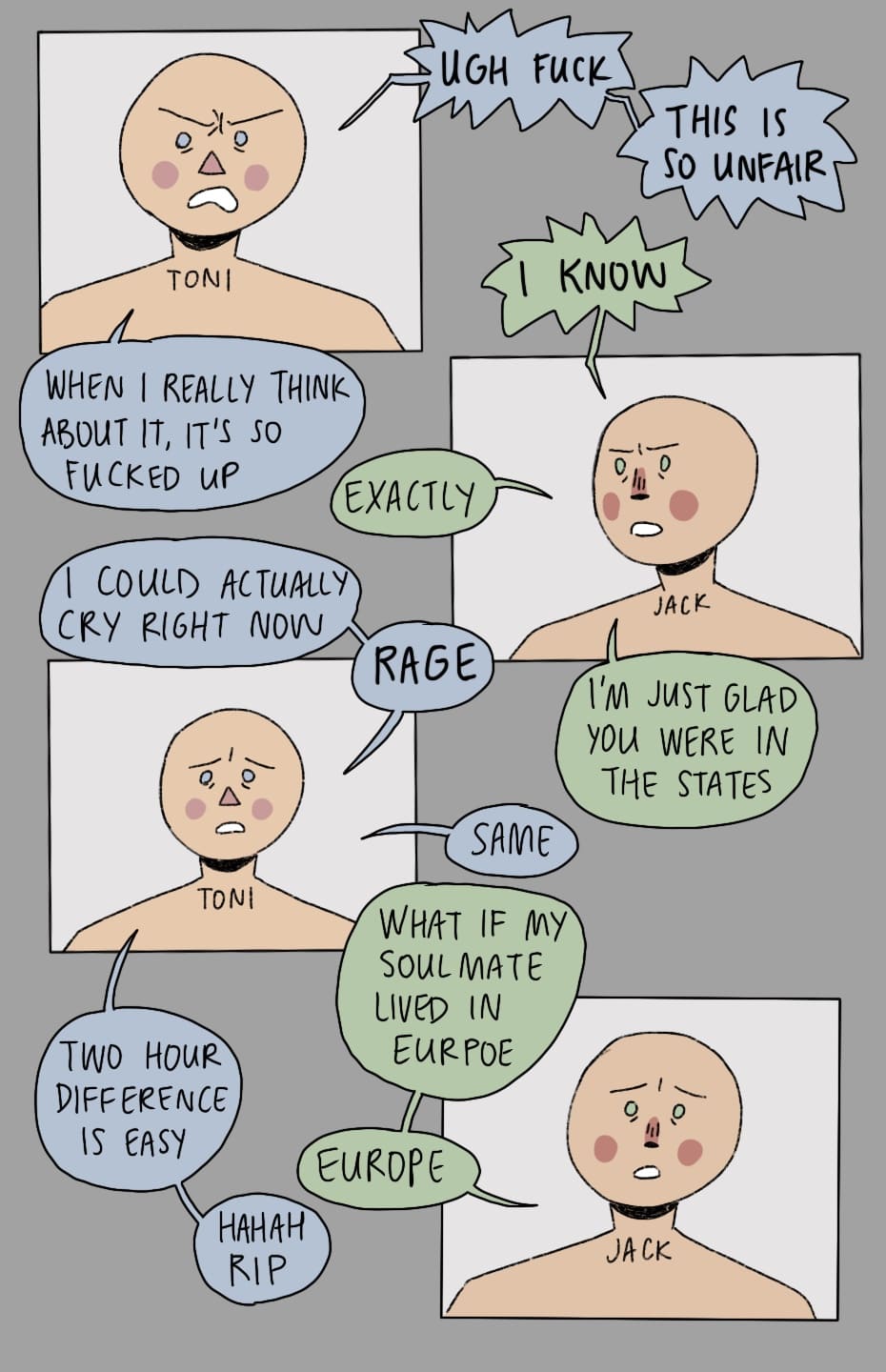 Jack and Toni find out they live in the same country, but over a thousand miles away.