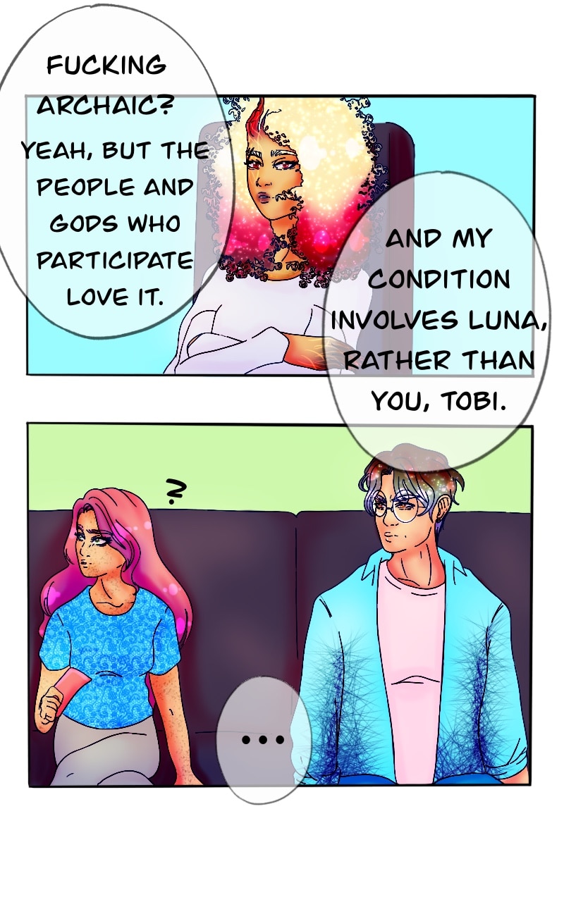 Luna is faced with confronting the reality that gods and other deities exist while she tackles trauma from her past. After an unorthodox confrontation, Luna finds herself sharing her body with... the moon goddess?! While attempting to save her planet, she will learn how to save herself.