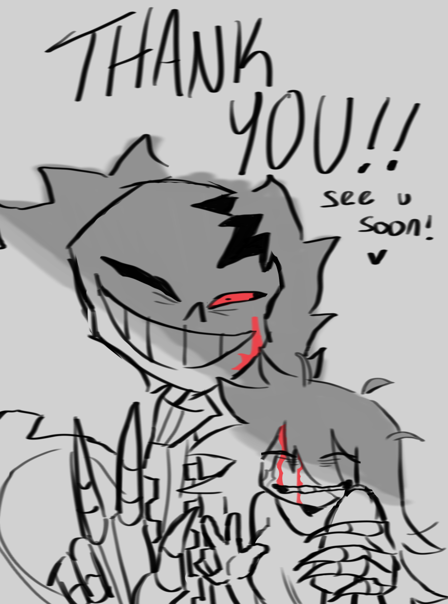 Also let me say THANK YOU FOR 1.6K VIEWS I WAS FLOORED WHEN I SAW THAT?!?!??! I DID NOT THINK SO MANY OF YOU WOULD BE INVESTED BUT I MEAN HEY !!!!! But yes, I upload arts and updates on the comic on my twitter!!! Go follow me there!!! https://twitter.com/zerogutzz