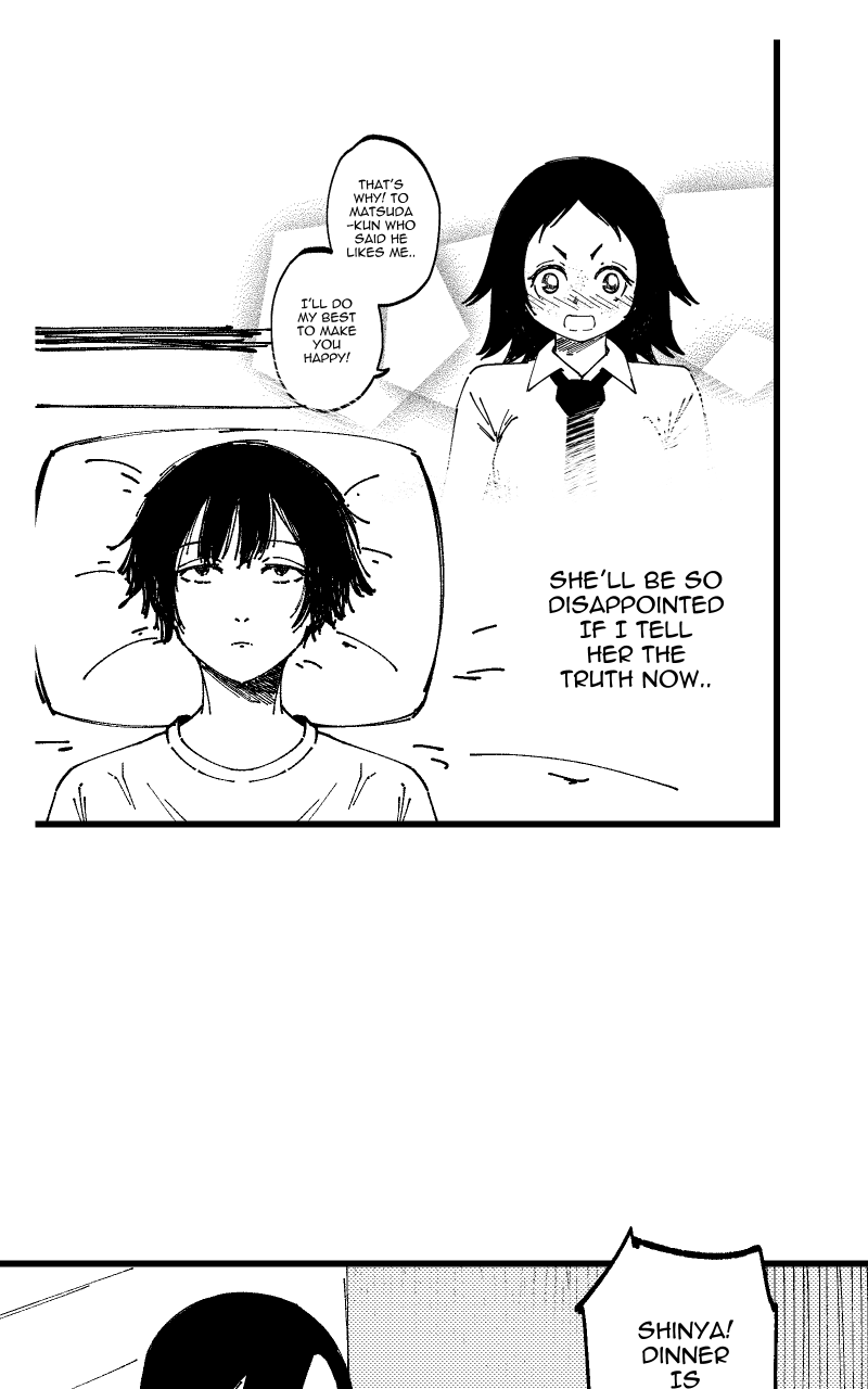 Matsuda is a guy who can't deal with disappointment. One day, he had been put into the spotlight and was asked a personal question. To avoid disappointing his classmates, he ended up lying. Little did he know, that one casual lie will immediately come back to bite him and throw his life into chaos.