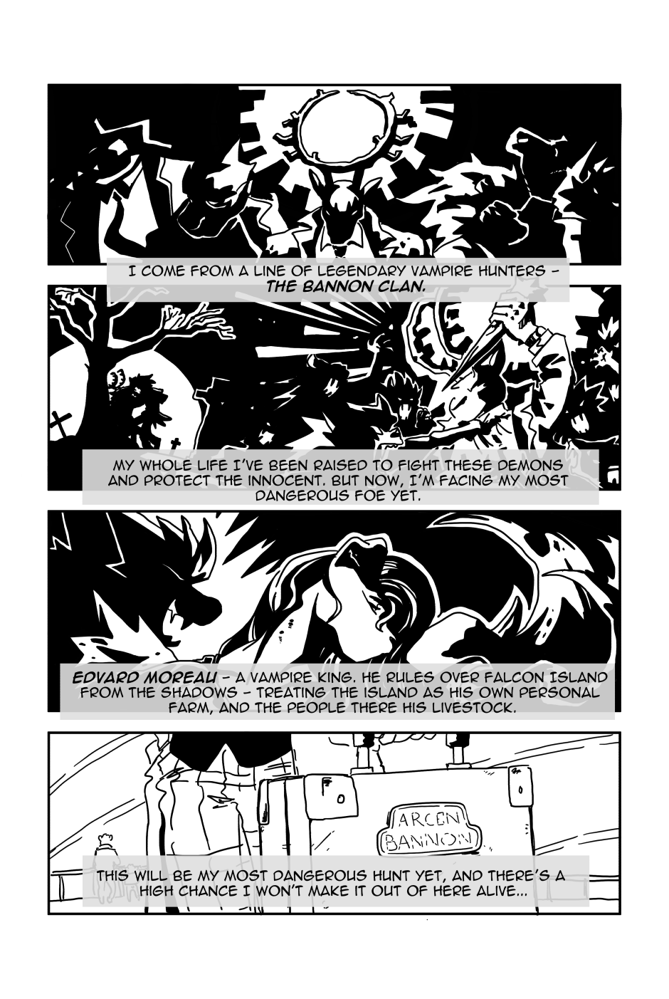 Follow Arcen Bannon on his last job as a vampire hunter, but things don't really go as planned as he travels to Falcon Island to defeat the notorious Edvard Moreau - the vampire king!