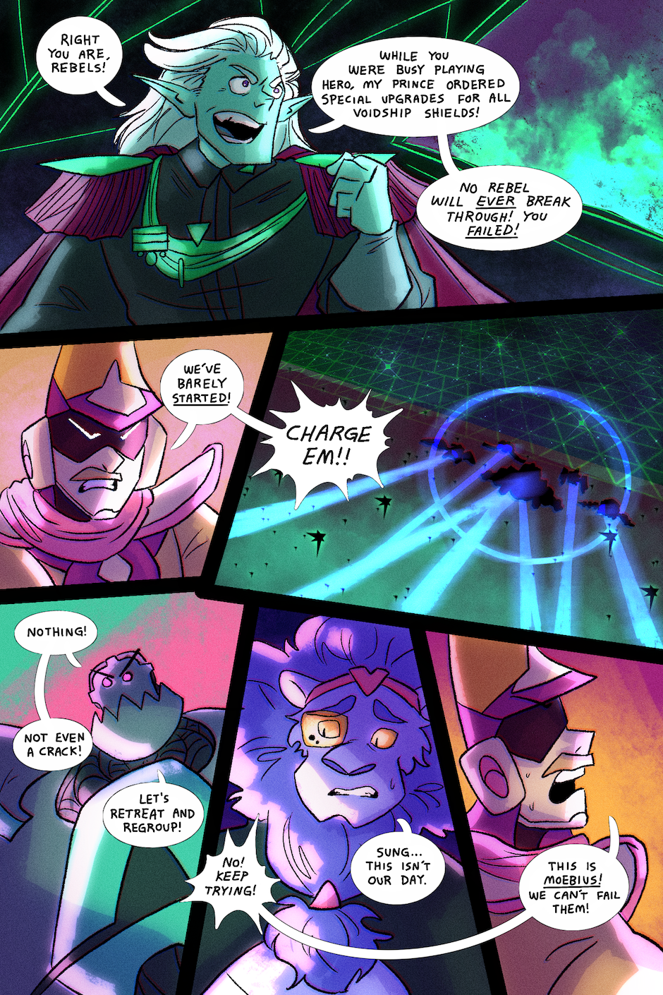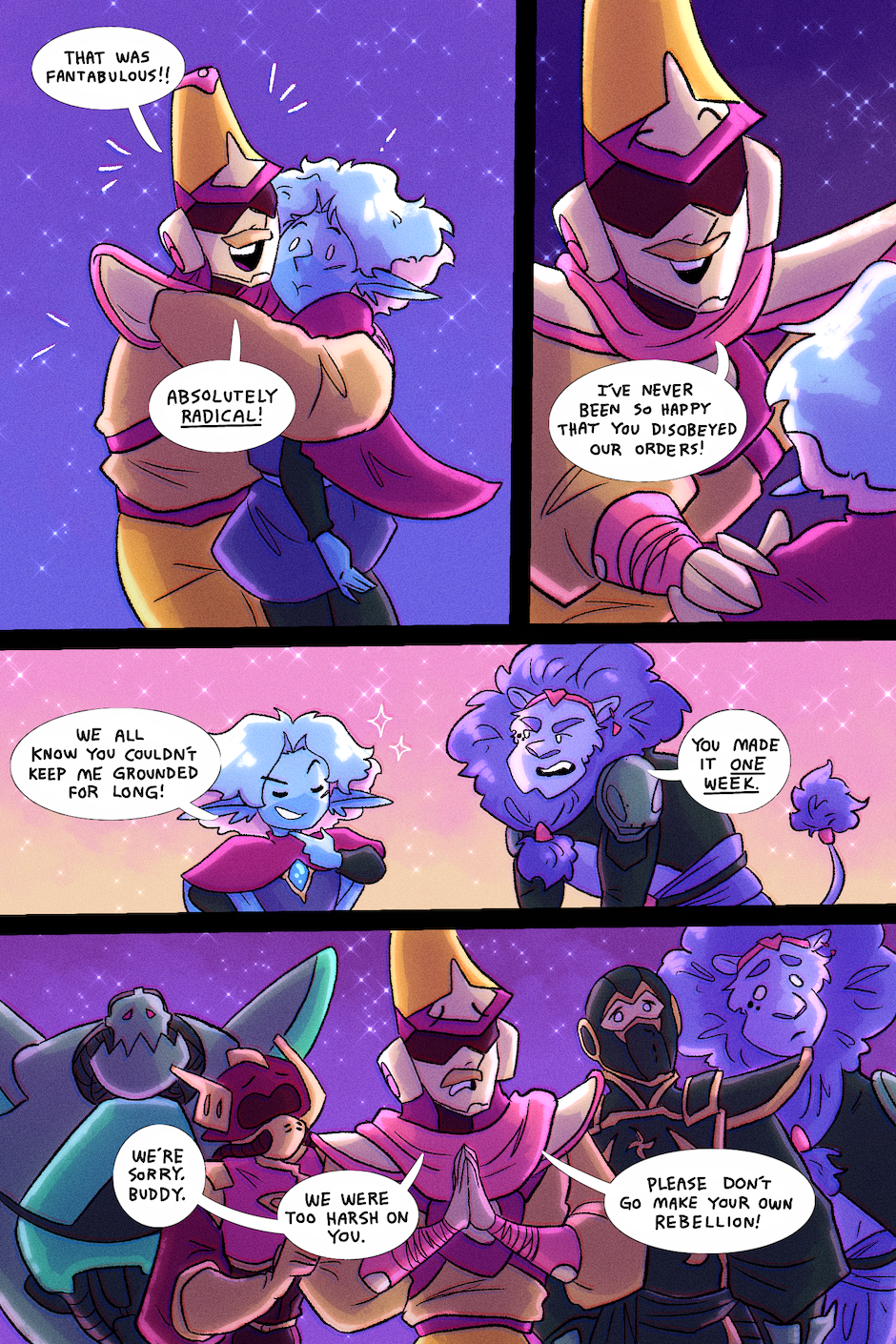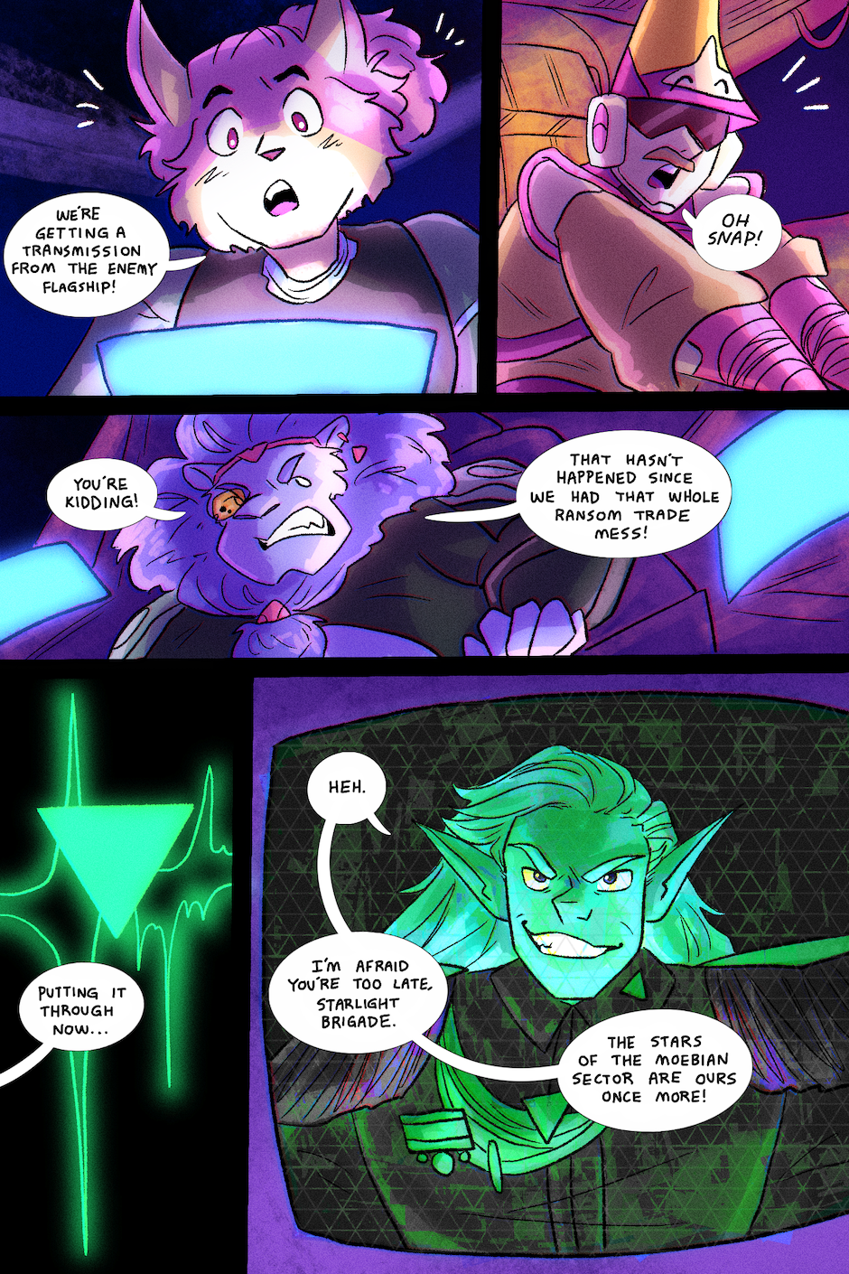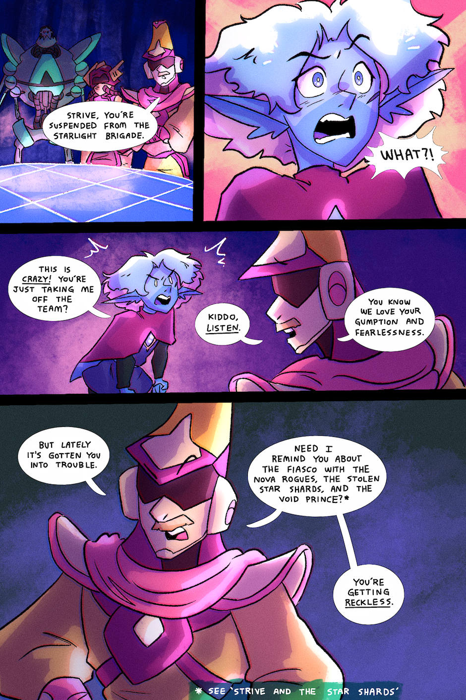 Based on the animated music video by TWRP, NSP, and the Knights of the Light Table, this comic follows a group of brave rebel pilots seeking to rescue the stars from the galactic terrorists known as the Void Empire. Along the way, they right many other wrongs in the galaxy, making all sorts of new friends and enemies on their adventures. These are the tales of the Starlight Brigade!