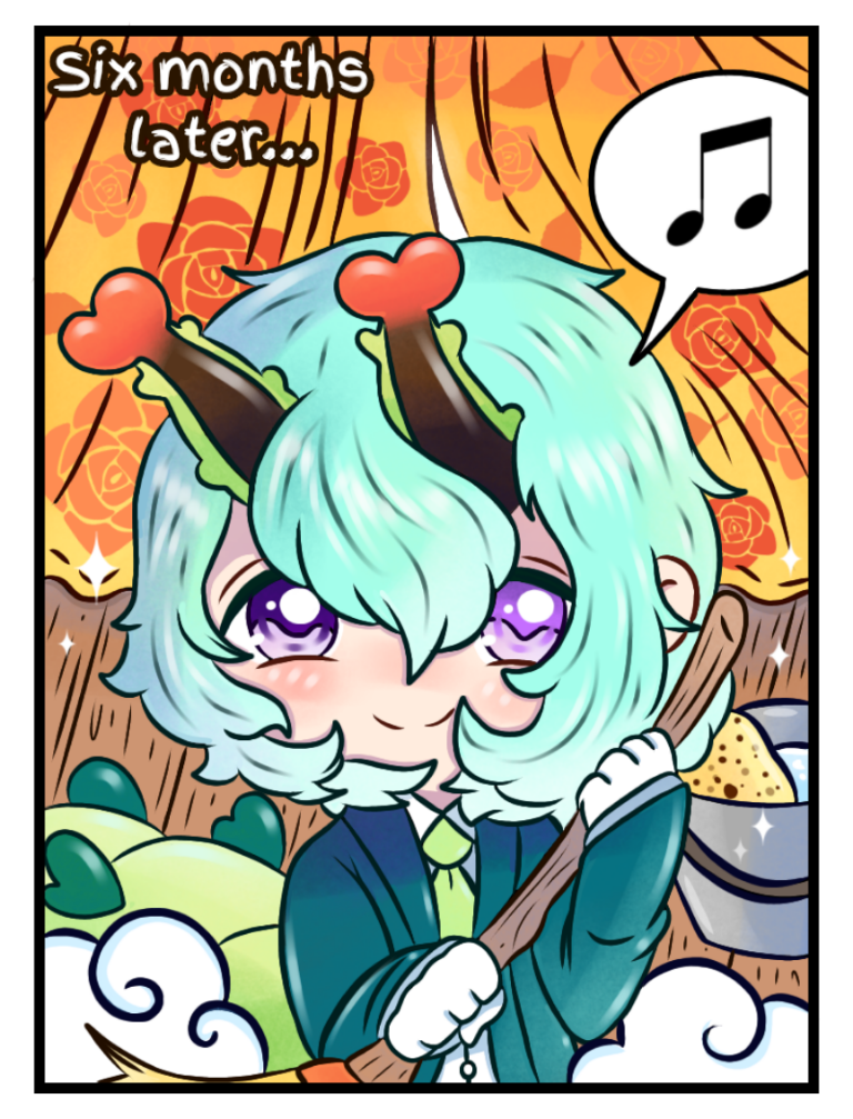 sadly Midori can no longer be a butterfly permanently she can only transform in an hour once a day someone sabotaged her metamorphosis that's why he is always nicknamed or the other caterpillars call her "the broken caterpillar" now he must live with that horrible scar on her back luckily Hyaku has been his support and is very kind to him Midori no longer feels defensive as he also trusts him more...