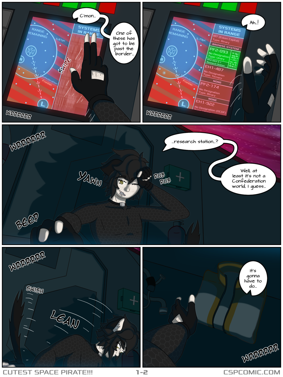 Cutest Space Pirate!!! is an action/ecchi sci-fi webcomic about spaceships, aliens, and flirty catboys! Primarily a sci-fi exploration and reluctant redemption story set in the semi-distant future, protagonist Jaimie's natural charisma often adds suggestive overtones to his adventures on the untamed Frontier.