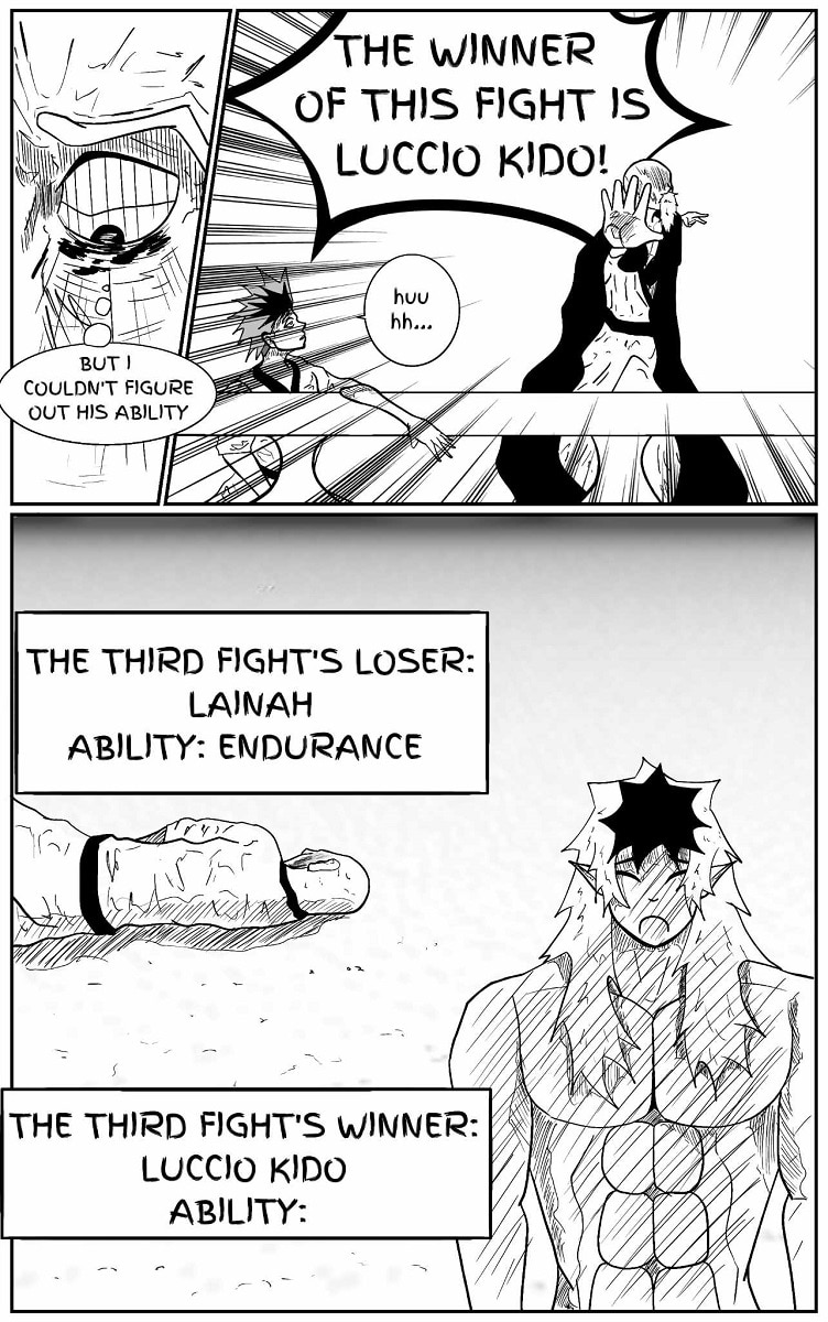 The protagonist of this story, Luccio Kido, passes the first round of this tournament with no problems. In the 4th fight, we can see how fate is not fair to everyone.