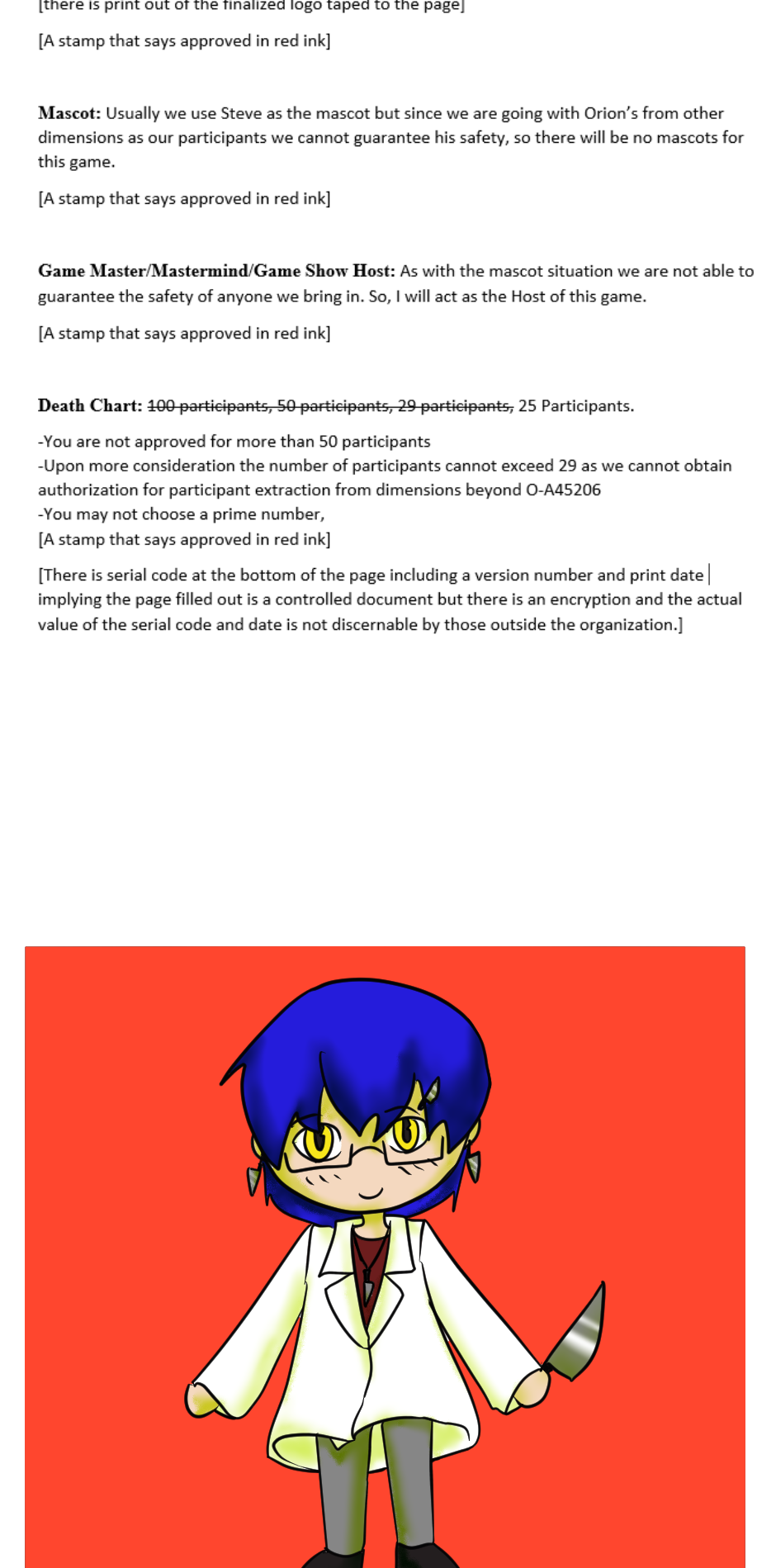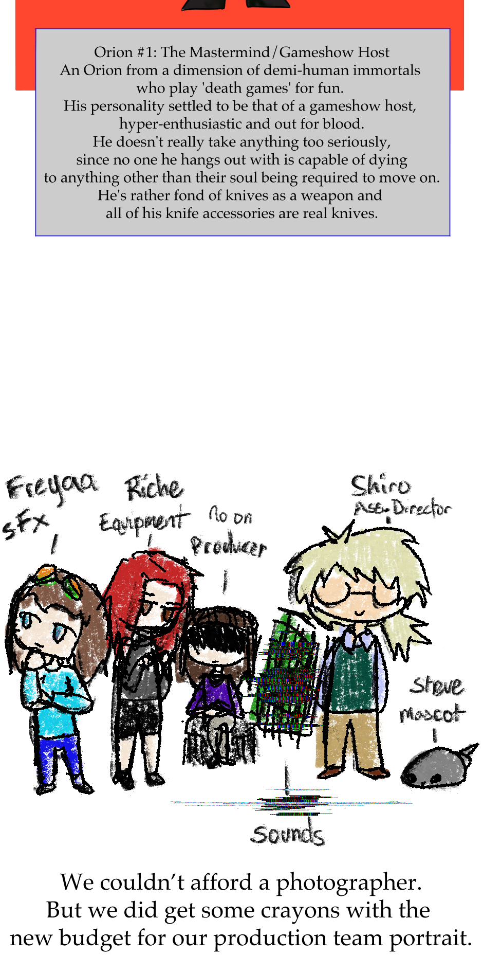 An Orion somewhere out in the universe has grown bored of the standard battle royale/death game genre and decided to make his own. This will not go as planned. 25 slightly different Orion's from various parts of the Rintz sector will face off in a fight to the death? deaths? How exactly does this work if they're all immortal anyway? Well that's not my problem I'm just the narrator.