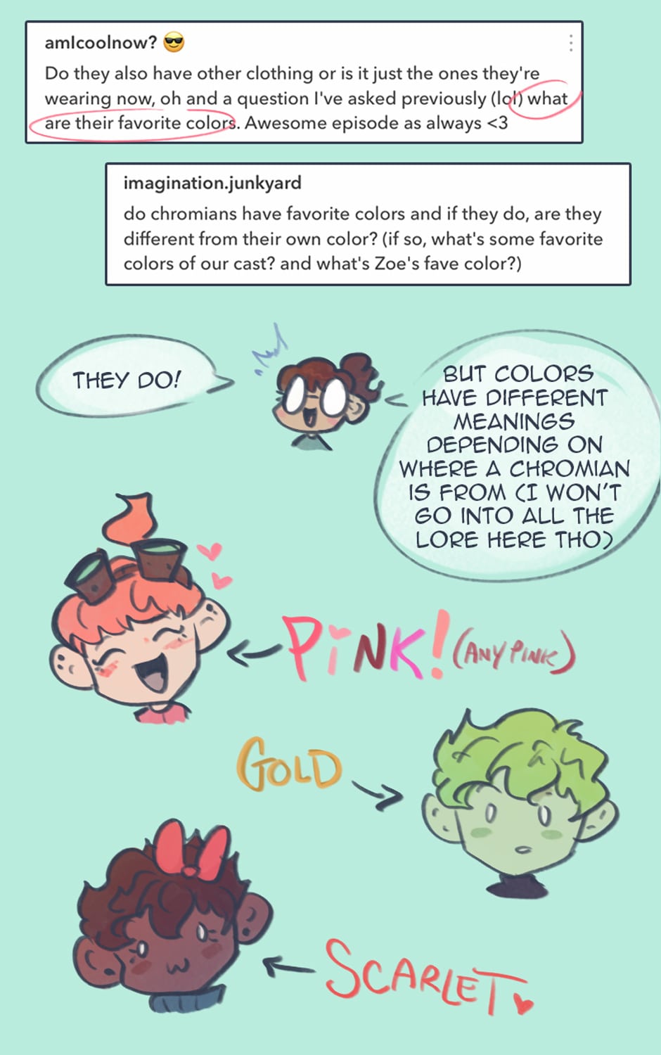 Context: in an earlier QnA, Zoe said that her chromian color would be VIOLET since its Dimitris favorite color.