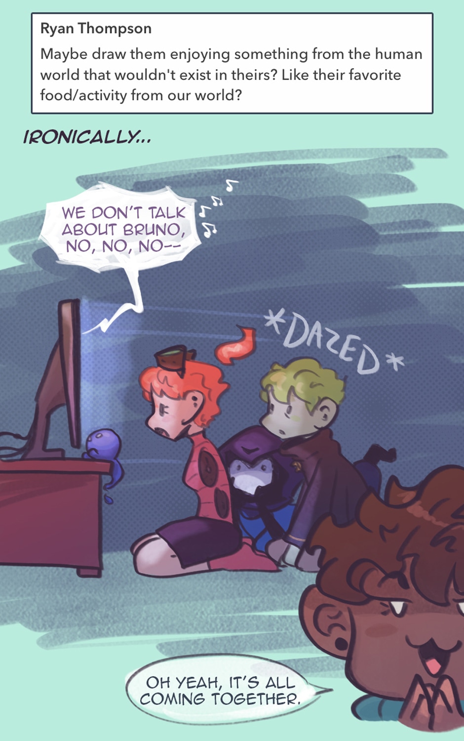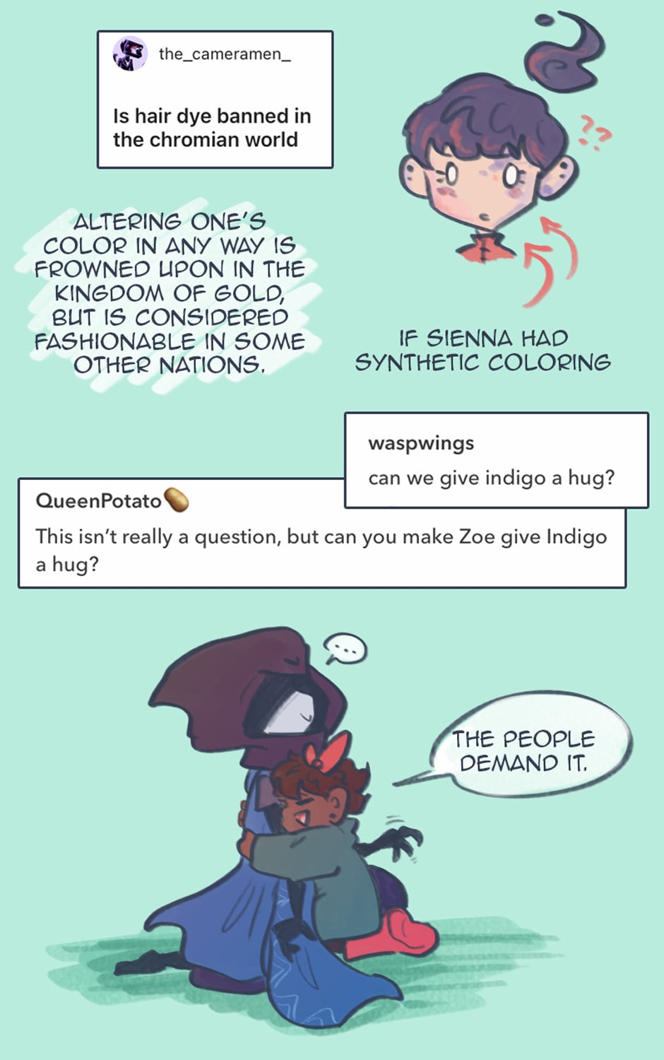 Zoe is a prickly 22-year old artist who is getting ready to marry the love of her life when he suddenly vanishes off the face of the earth. Soon after, she finds herself thrust into a surreal alien world where all images are banned, its alien inhabitants are named after colors for some reason, royal drama is brewing and, worst of all, she has to learn how to make friends... All while trying to find her missing fiancé. Oh, and she's been turned into a kid. (Updates Thursdays!)