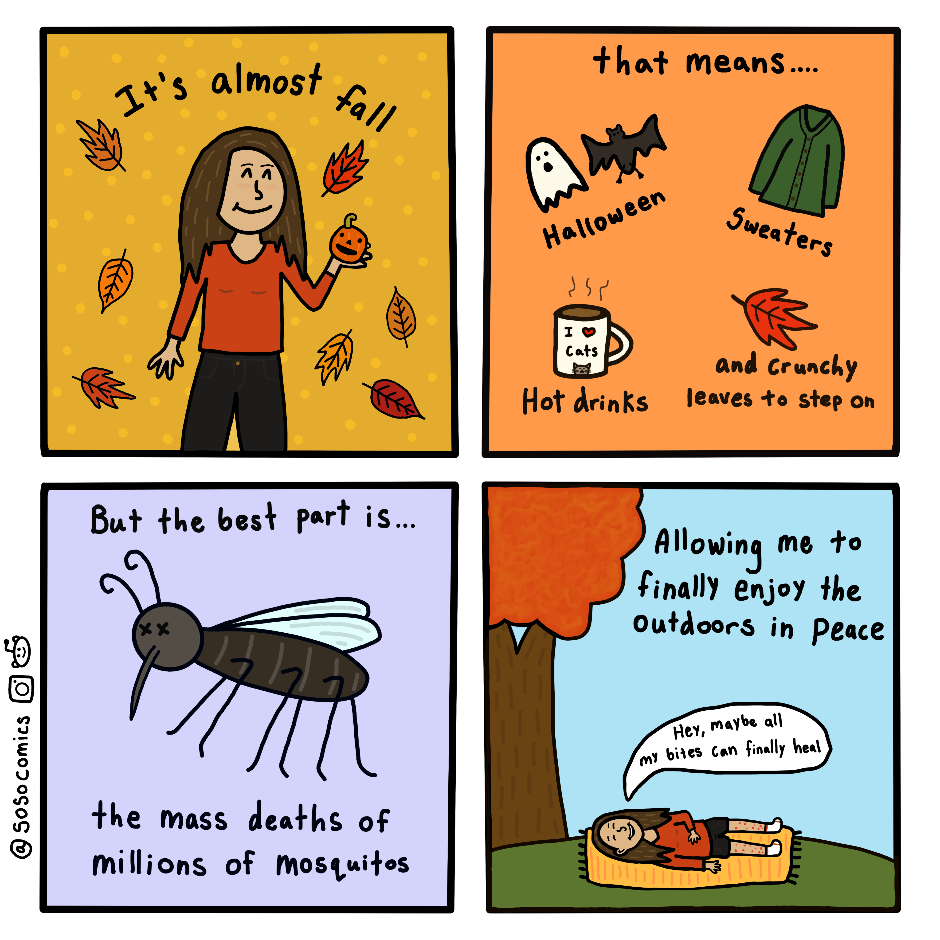 Send help I'm actually still getting a ton of mosquito bites. I'm blaming it on the recent heatwave that came through my area. I guess I gotta avoid going outside till winter now...