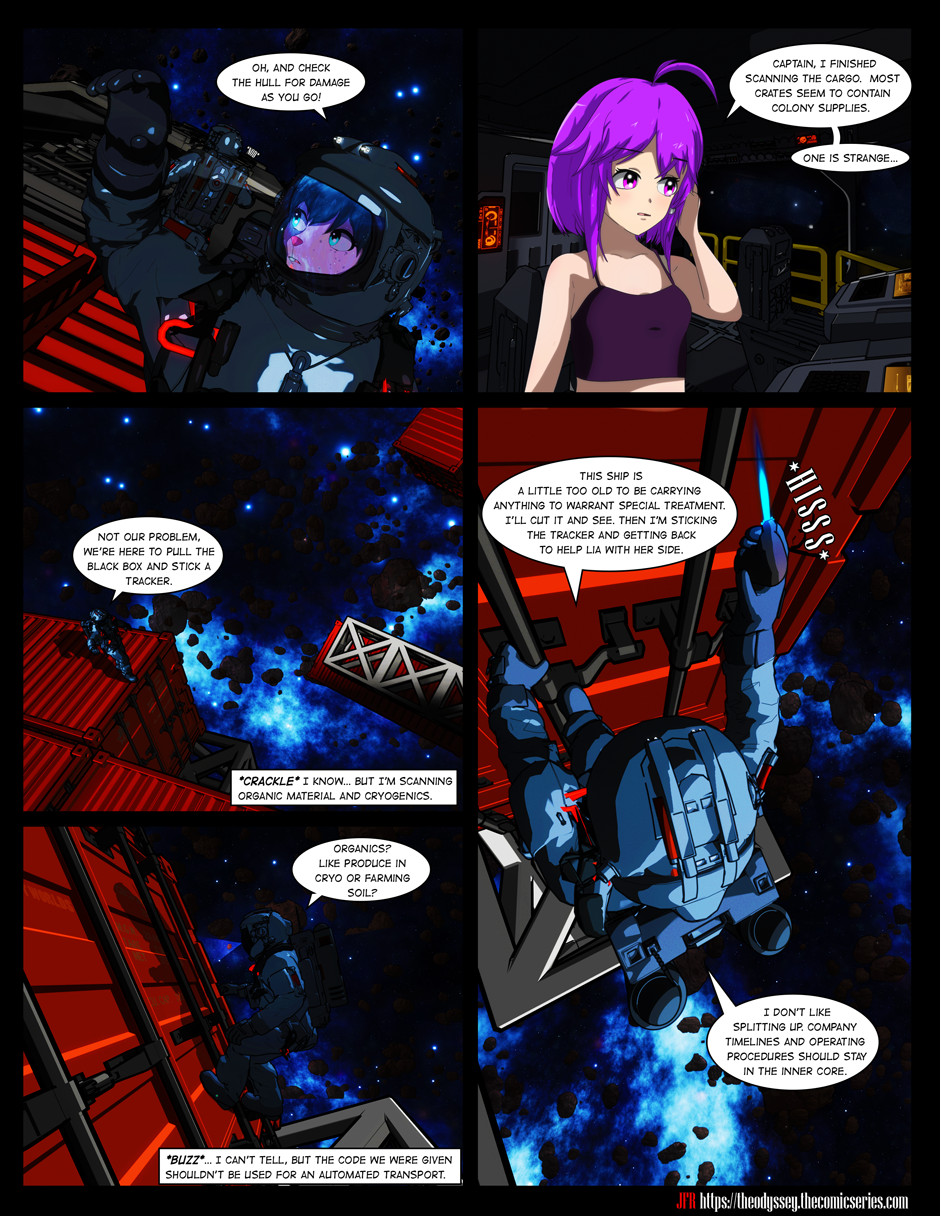 New Pages Every Sunday! Extra Art - https://www.deviantart.com/theodyssey-jfr Twitter - https://twitter.com/TheOdysseyComic Notice- All company employees agree to contract clause C-129 by viewing this content. - Distant Worlds Corp -