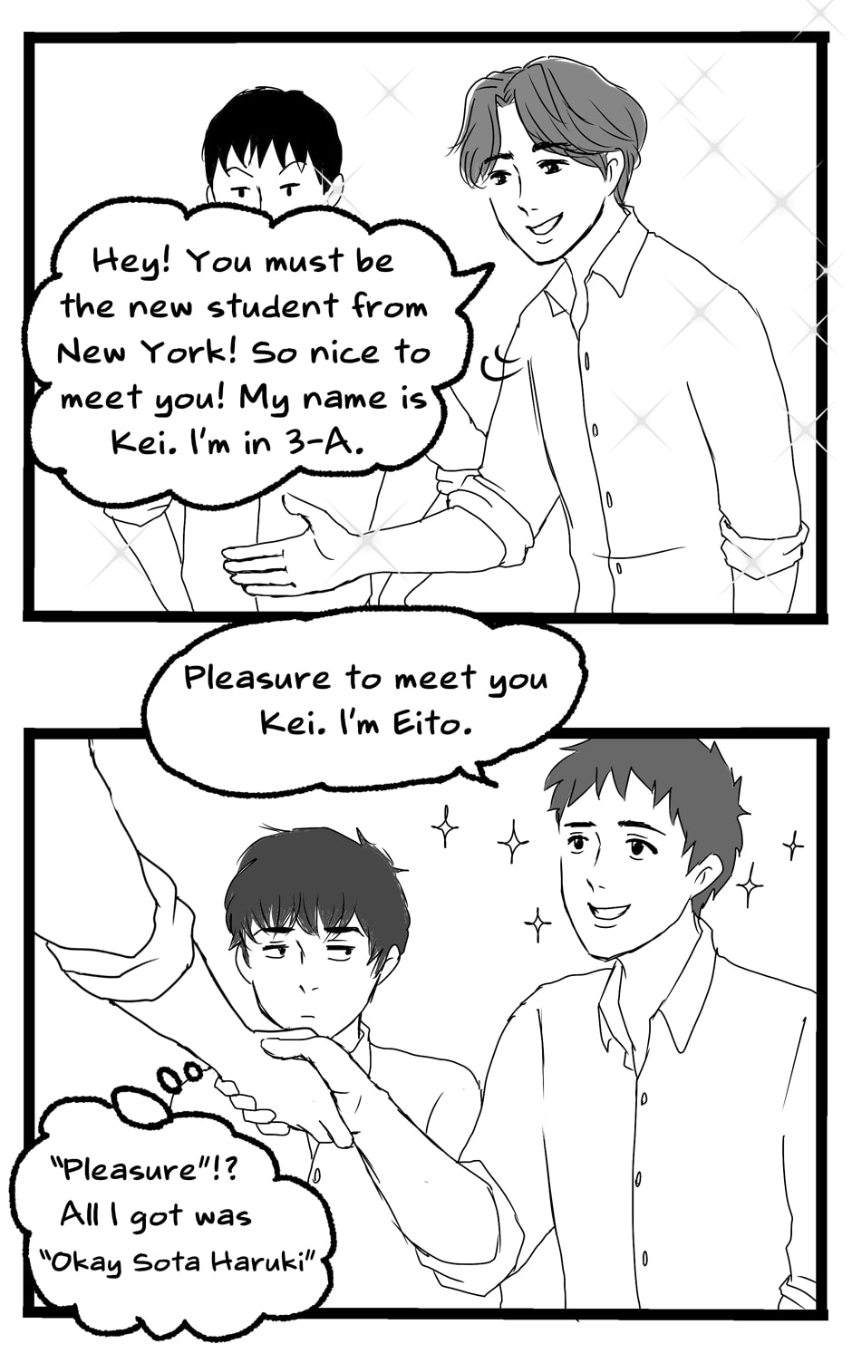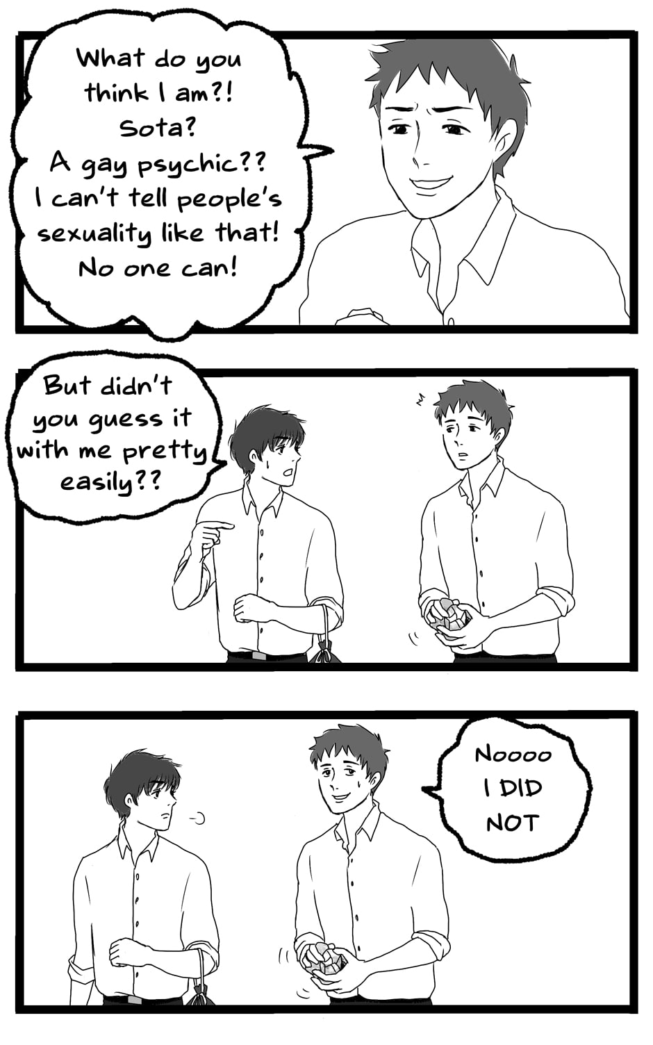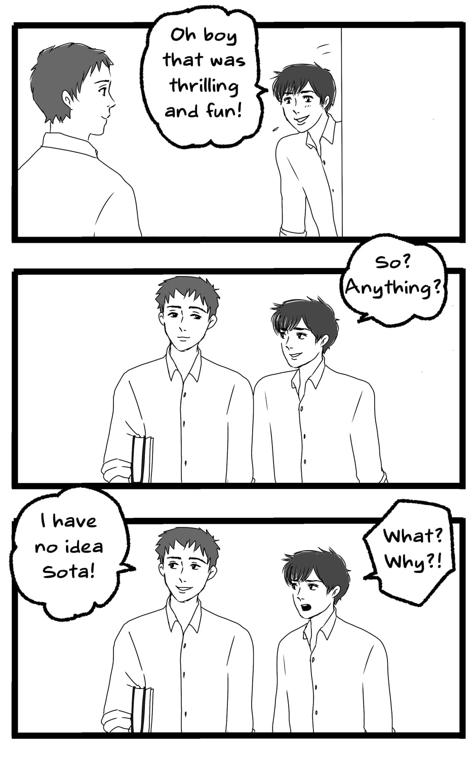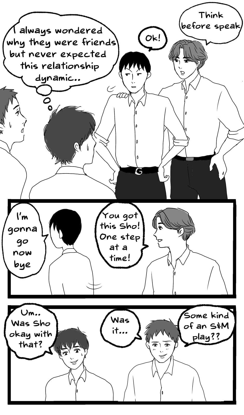 It seems as though Sho has some mental condition or something to be this socially inept... It's good that at least he's not evil and Kei looks out for him. 👌