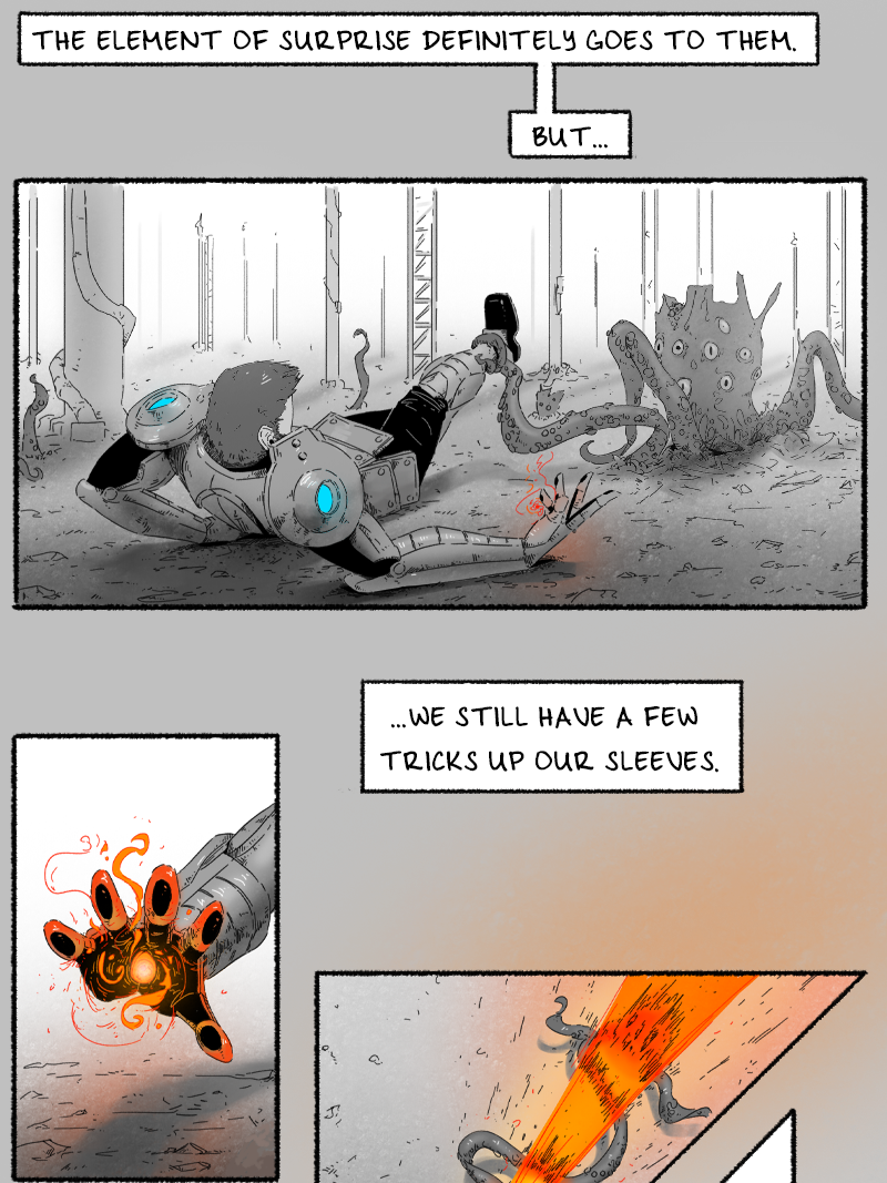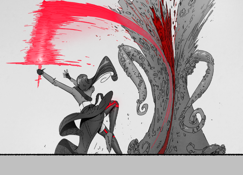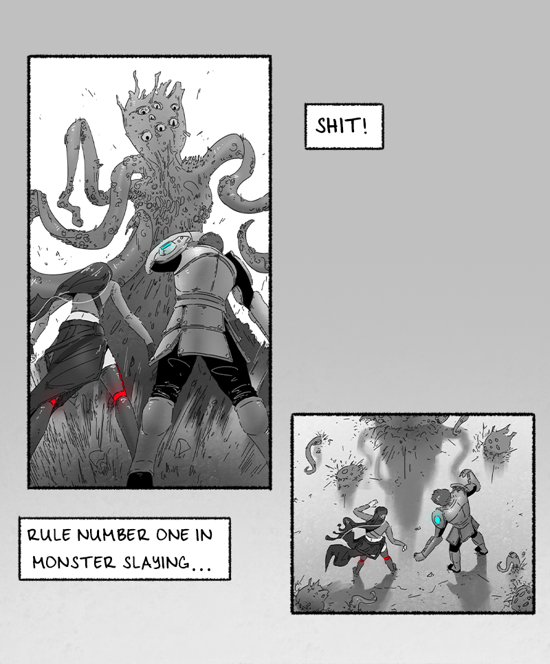 What seems at first to be just another adventure of "Nora & Cherry," quickly gets out of hand as the duo are surrounded by tentacled, subterranean, eye covered monsters!
