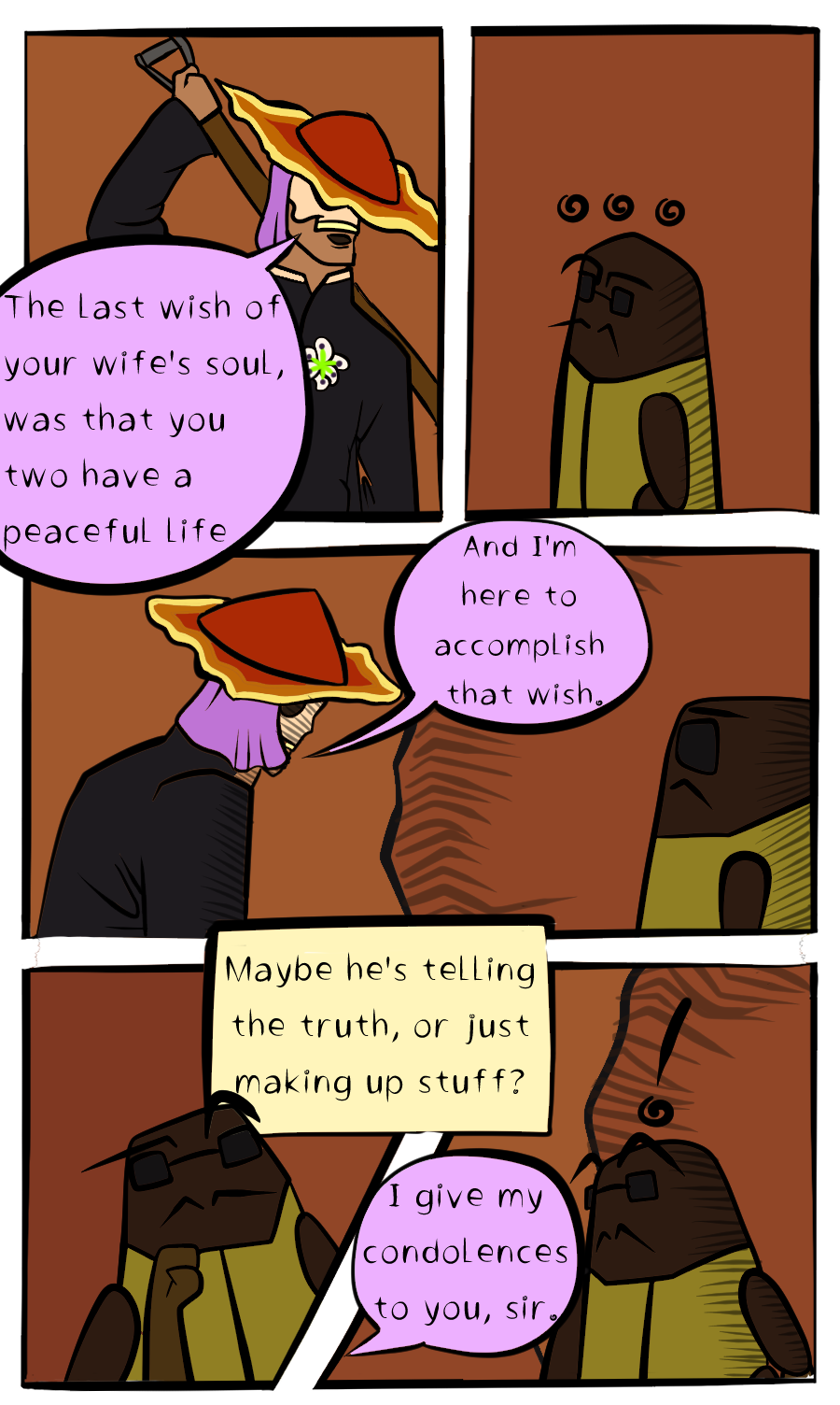 Urupe is a misterious wanderer, with the ability to see the soul and the last wish of a deceased person. He crosses a giant desert, with the intention of finding those souls and accomplishing their wishes, though his missions are never as easy as they seem..