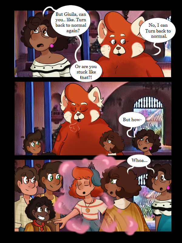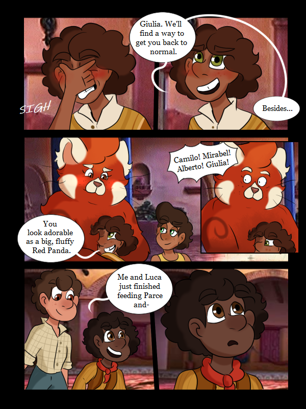 Giulia just suddenly wakes up one morning, Turned into a Giant Red Panda! Just like… Mei had. Was she a part of Mei’s family? A long lost family member that she didn’t even know? Well, with this new appearance and gift. She seeks a way to find a cure, but she isn't a lone. Giulia's friends Luca and Alberto, and boyfriend Camilo. Try to find a way to cure this bizarre transformation, but the real question is.. will Giulia embrace the Panda.. or seal?