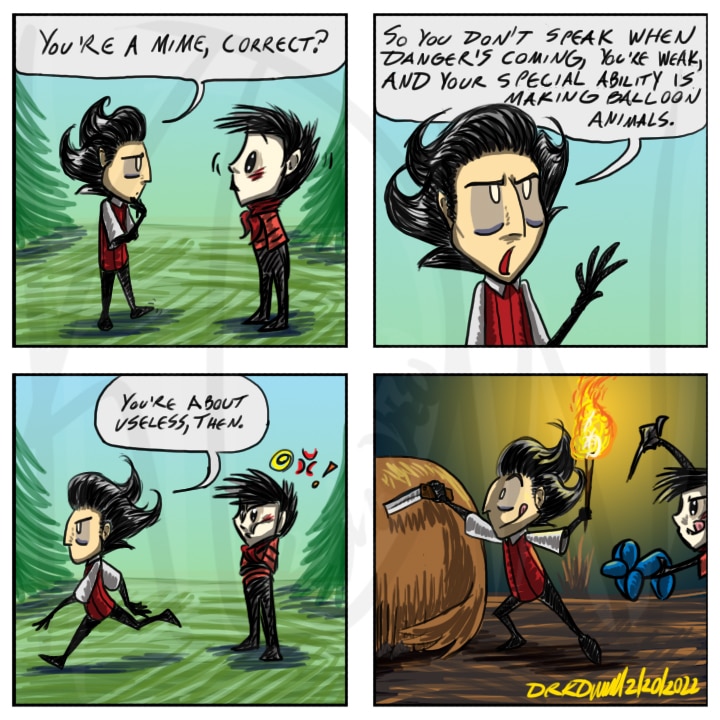 I'm sure this has been done before, but it still makes me laugh, so there. This one had me stalling for a while because it's the first time I had ever drawn Wes--you can tell the difference when you look at how Wilson is drawn compared to Wes.