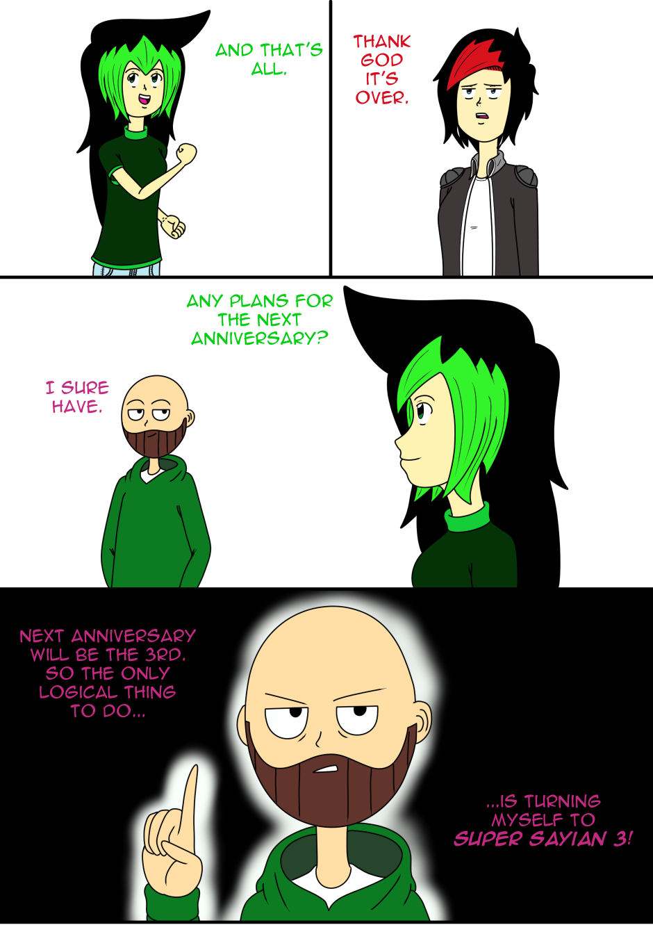 This was fun to read, and I'm eager to meet the new characters :3 The only downside is that now we have to wait 2 years to see Papa's super saiyan level 4 transformation :p