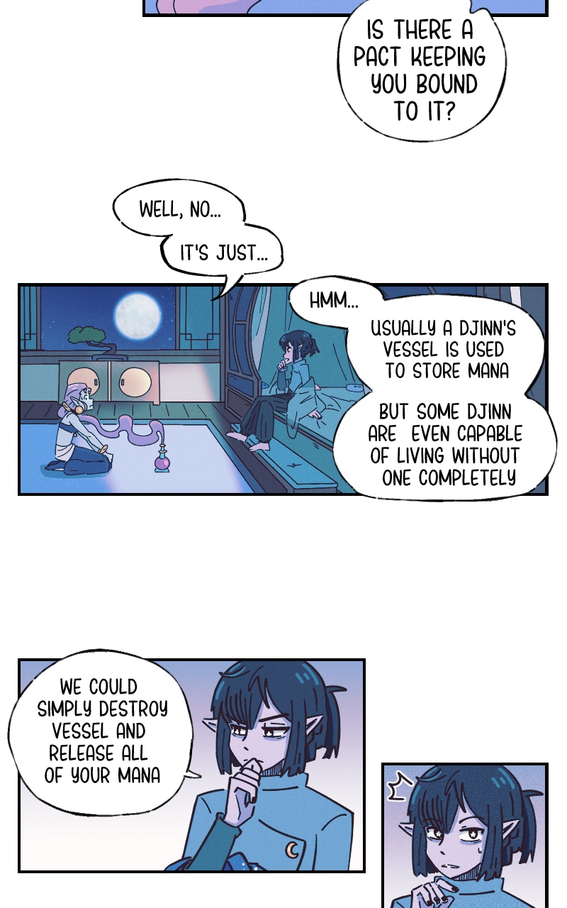Soraya, a magical jinn, has spent most of her life trapped within her "bottle". In her search for freedom, she finds herself at New Moon inn. It is here she meets the mysterious Star Sage and makes a pact that will forever change her life.