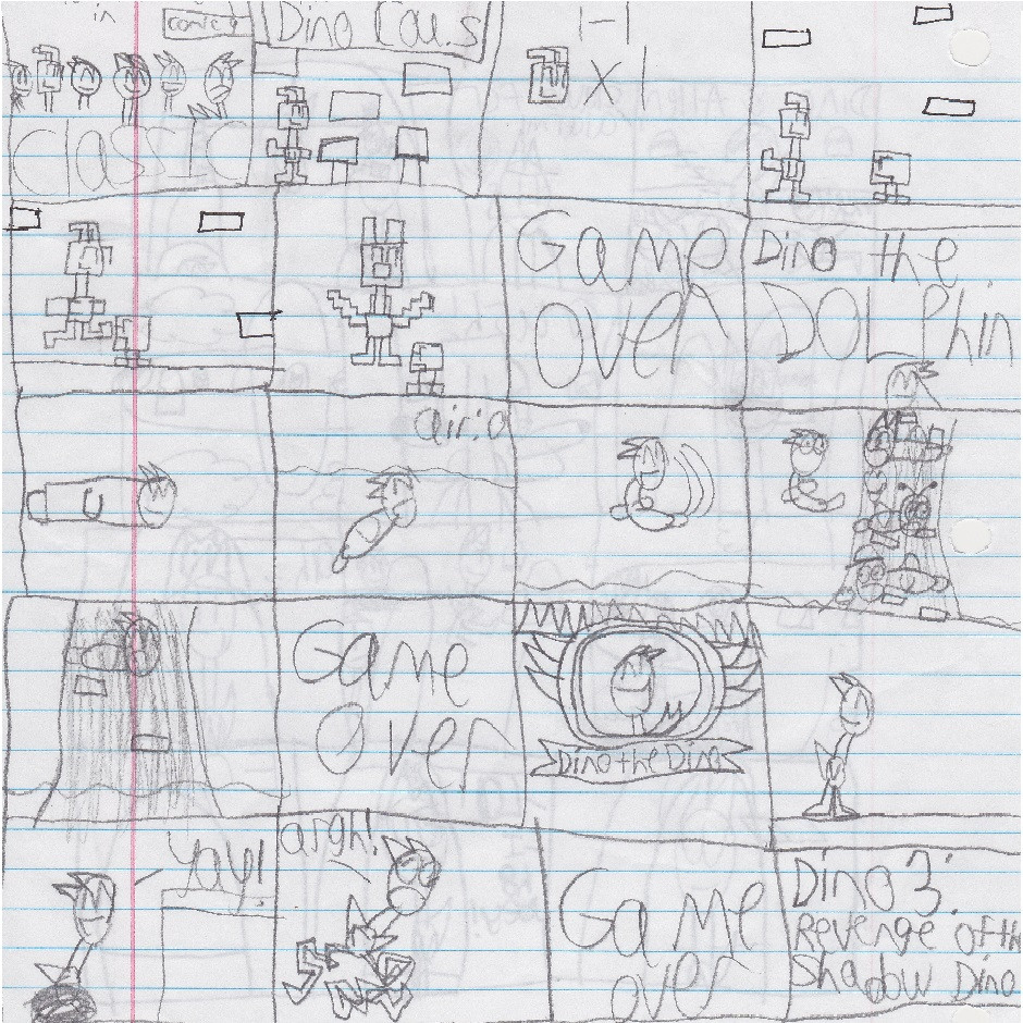 Today, our hero Dino travels through some video game worlds! Today's include: Super Mario brothers, Ecco the dolphin, and Sonic the hedgehog!