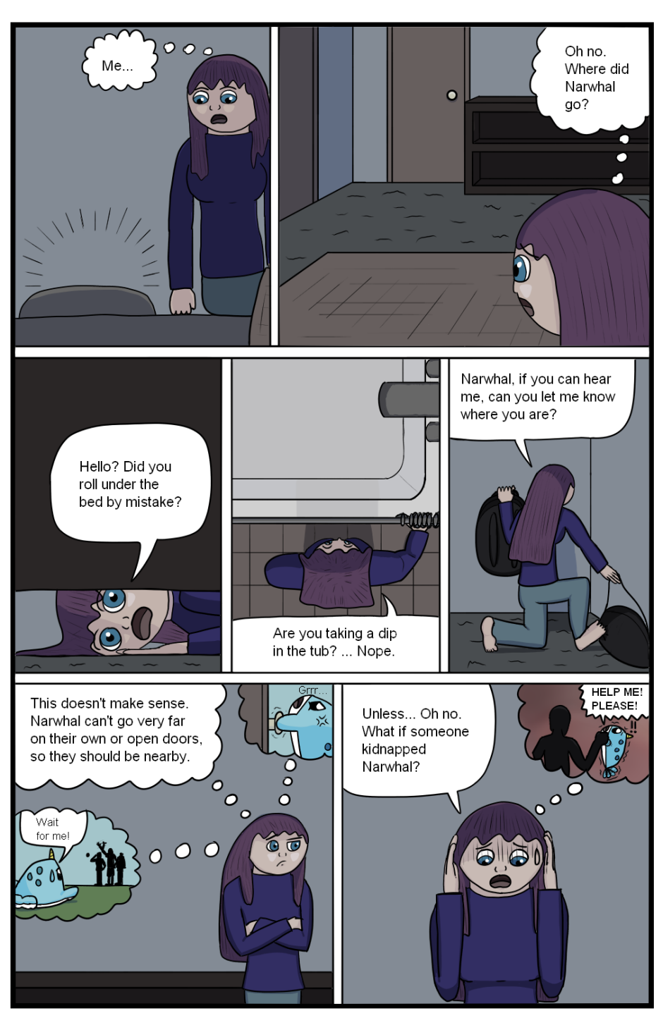 If Beatrix thought her night couldn't get worse, she's proven wrong when she discovers that Narwhal has gone missing. Her attempts to search for her plushie friend turn out fruitless when she fails to find even a hint at where they may have gone. Knowing Narwhal's limitations at how far they can travel, Beatrix begins to fear the worst may have befell her friend.