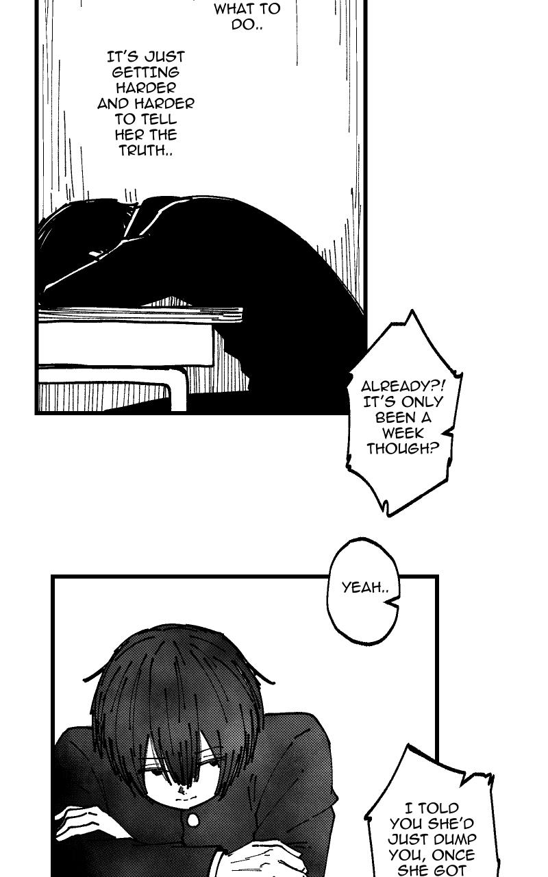 Matsuda is a guy who can't deal with disappointment. One day, he had been put into the spotlight and was asked a personal question. To avoid disappointing his classmates, he ended up lying. Little did he know, that one casual lie will immediately come back to bite him and throw his life into chaos.
