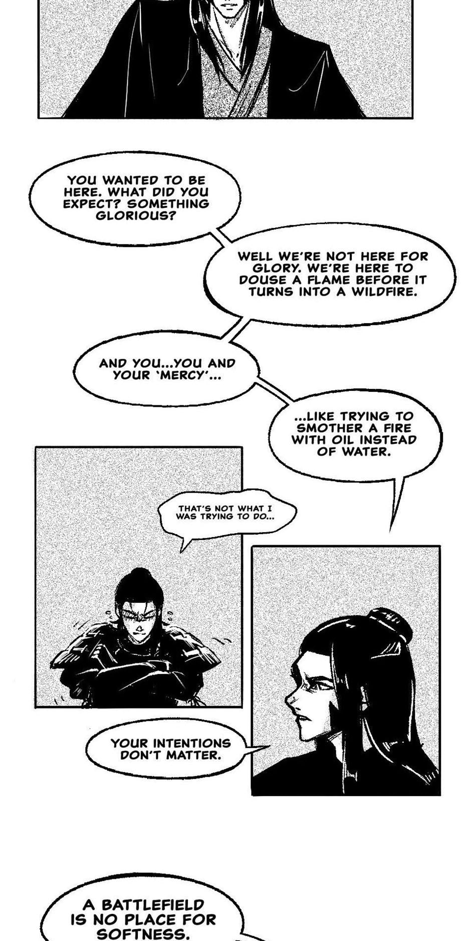 feels a lil dry. the art style is perfect for the you tho but at the same time leaves lots to desire. the style is sketchy it works but leaves a lot to be desired. main thing for me is the backgrounds. you can use that white void to your advantage create some atmosphere around your characters. i’m just an editor as a hobby from reading to much manga so i don’t really what’s best but i’ll try to help since it’s a fresh start. no need to take my advice just thinking of some ideas