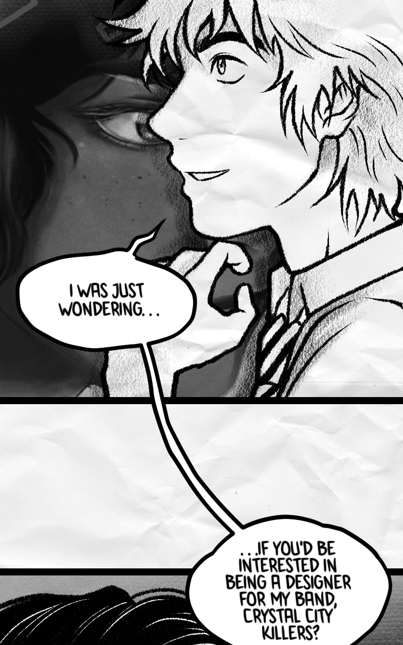 15-year-old Dennis Mulberry has been the lead singer of high-school band Crystal City Killers for 3 years now. After the band's bold decision to start making their very first EP, he meets Harvey Huxley-the perfect candidate for their band's designer. As the bond between Dennis and Harvey blossoms more and more each day, Dennis realises that his journey of accepting who he is may come earlier than originally planned. A heartwarming LGBT comic about being transgender in the world of love.