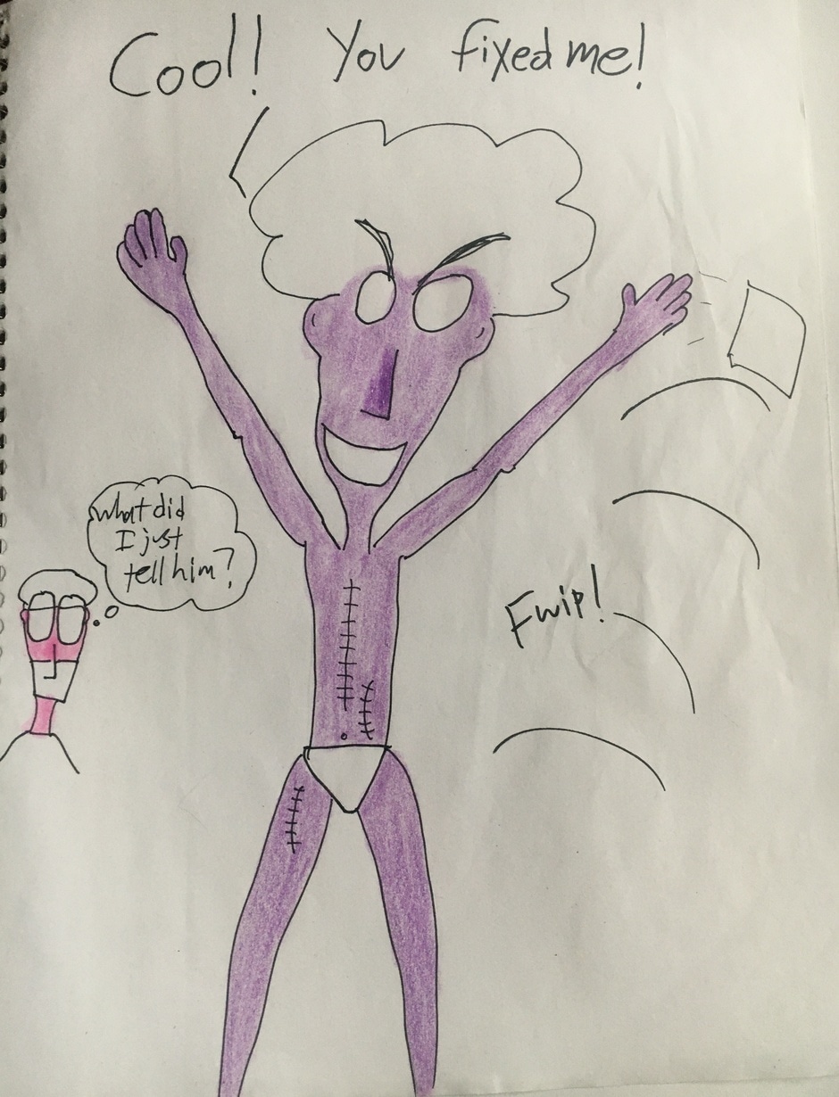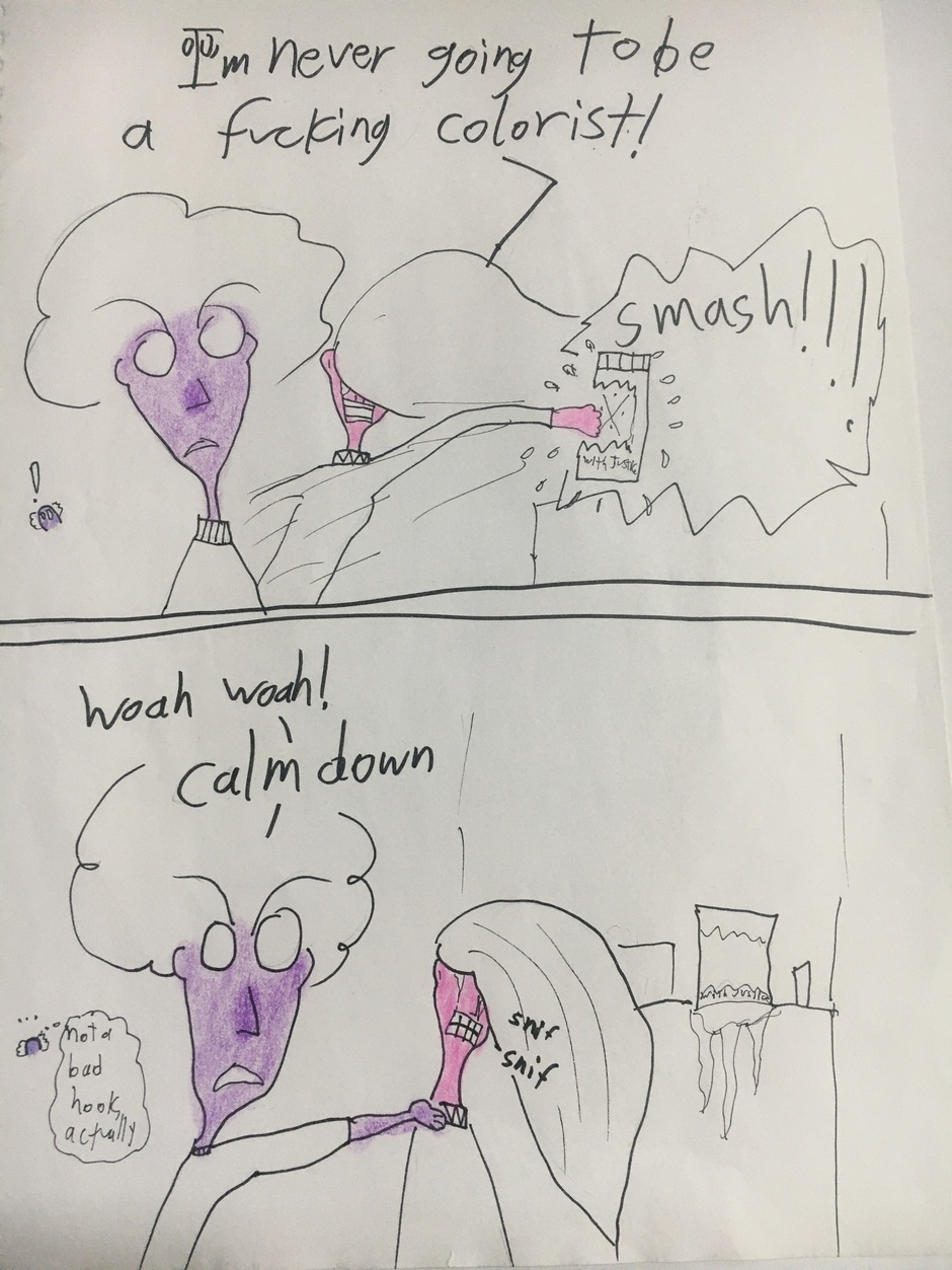 Magg is a purple pariah trying to survive in a world that hates anyone and everyone who is not the right color. Oh yeah, and his fists turn into clowns whenever he fights for his life.