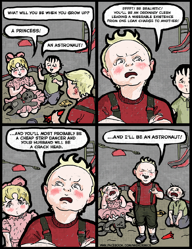 Or you’ll be an asshole working a 9-5 job and mumbling about your lost dreams and the only thing that will be building your confidence is tearing down others.