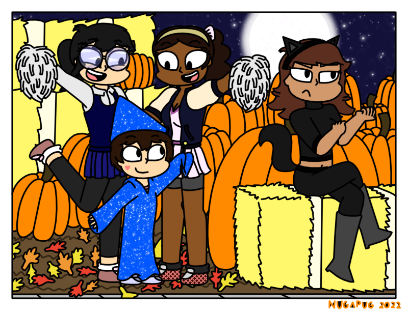 Since its the season of ghouls, spooks, candy, and more. I just think it's best to make a Halloween themed Puzzled Piece where the girls and the little boy are dressed in their costumes and hang by the world's biggest pumpkin patch.