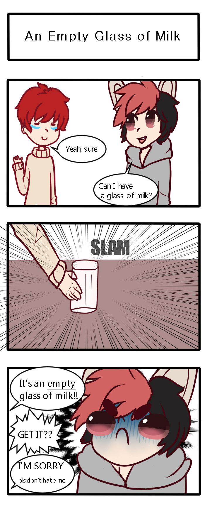 I'M SORRY read this nerds comic: http://tapastic.com/series/An-Empty-Glass-of-Milk
