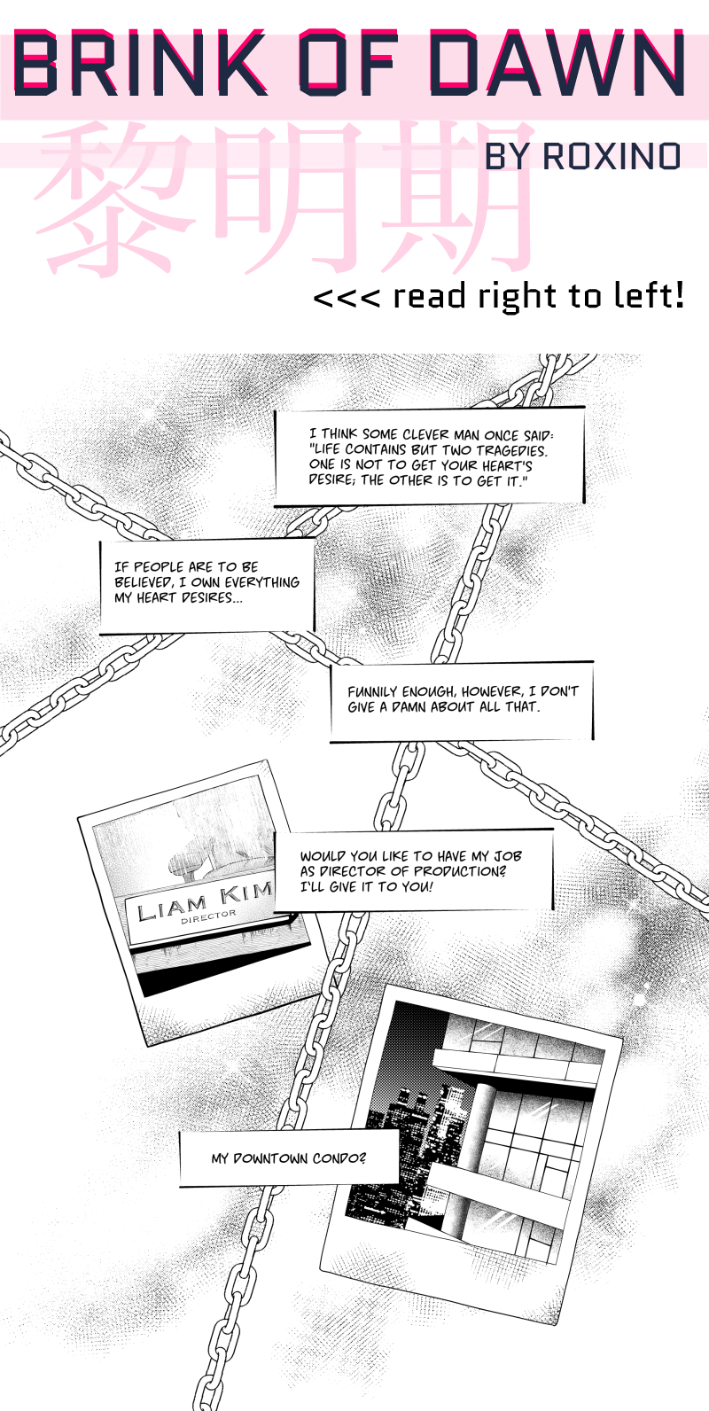 A BL story about infatuation at first sight and two men in their thirties who are looking for their own paths in the big city.
