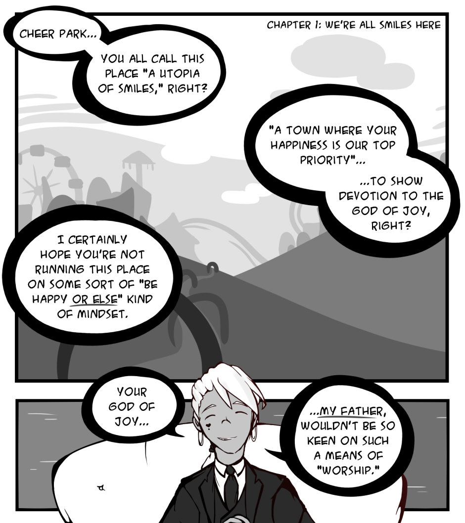 Cheer Park is NOT an explicit webcomic, and depictions of violence are very stylized/cartoony and unrealistic. However there are still references and conversations depicting dark or suggestive themes that are intended for a more adult audience, so please tread with caution!