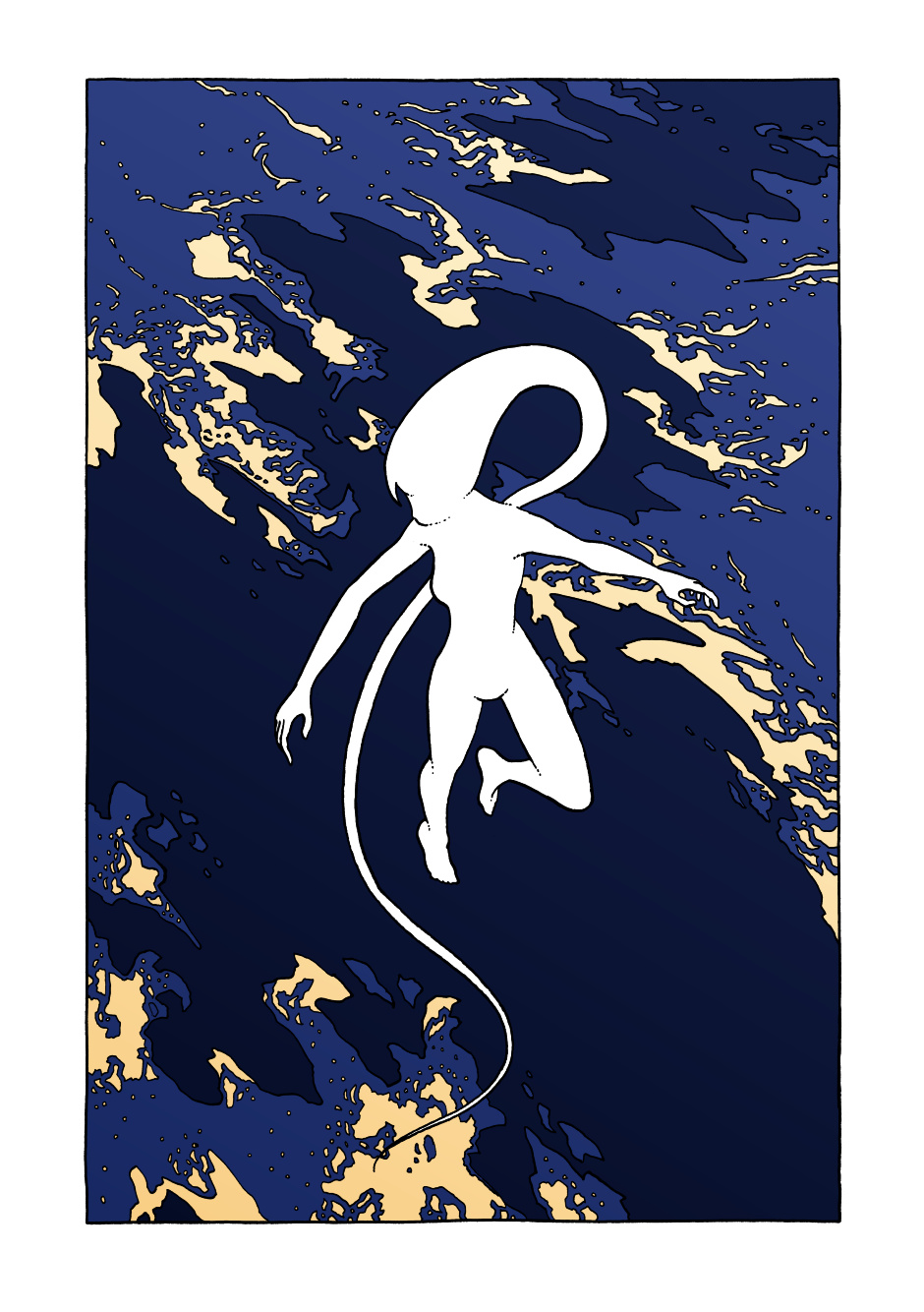This is a side project I do just for fun. It is a much simpler project than the other ones I’m mainly working with right now. A few weeks ago I watched one of Boards of Canada’s music videos. (Dayvan Cowboy was the song) which features clips from Joseph Kittinger’s insanely high parachute jump (I think he did it in 1960). This and a picture of a female silhouette on a beach that I found somewhere on tumblr a while ago suddenly made me want to make a series about an astral projection that goes wrong. 6 months later I think I found out who the model in the photo and who the photographer was. Another photo that seems to be from the session just appeared on my tumblr dashboard. The model is named Arlenis Sosa and the photographer is named Federico De Angelis. This series will be something to have some fun with when I have time to spare. I have no idea when I will finish this. I may blast through it in a few weeks, or it may take a whole year. Who knows? All I know is that it will consist of 48 A4 sized drawings. I'll update with one drawing at a time as I go along.