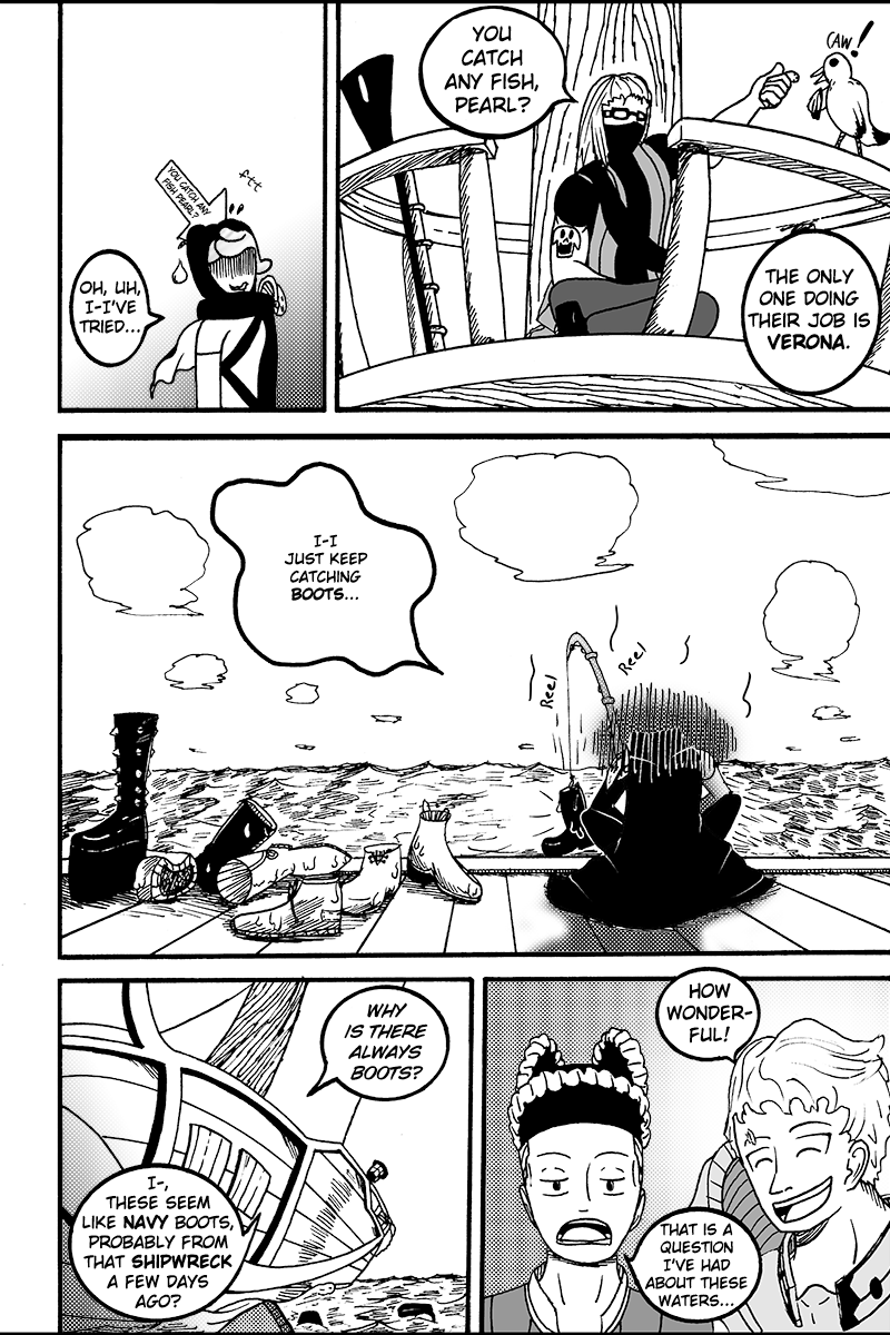 William, Duros, Ragnar, and Verona took to the seas as pirates in search of their own goals. After a shipwreck wipes out most of their crew, they meet a mysterious girl, Pearl. This makeshift group, brought together by misfortune, set out to sea seeking answers to both their individual quests and the meaning of a crew.