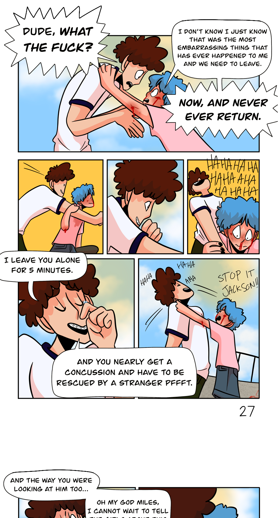 Miles is a shy kid who loves to skate. One summer day after a bad fall, a cute guy helps him off the ground. He's tall, mysterious, handsome and suddenly all that Miles can think about. Could his silly little skatepark crush possibly turn into something else?