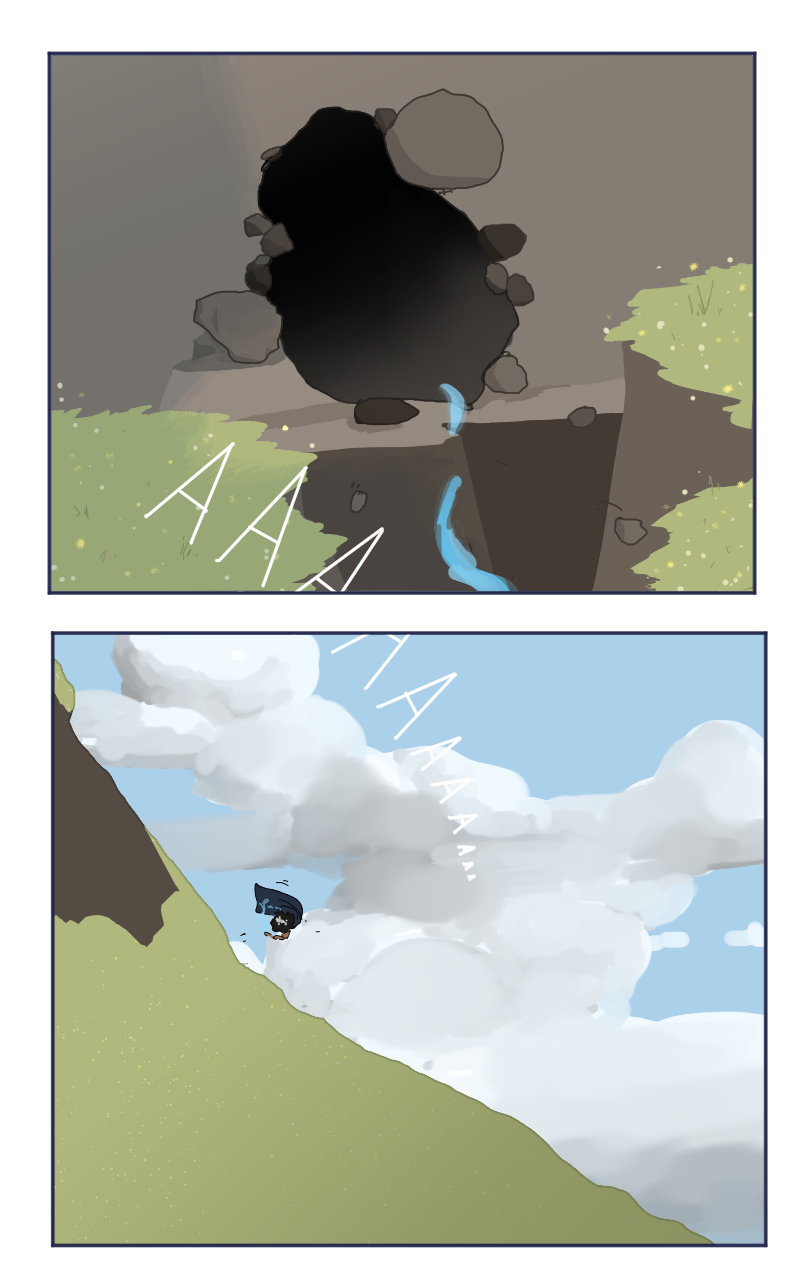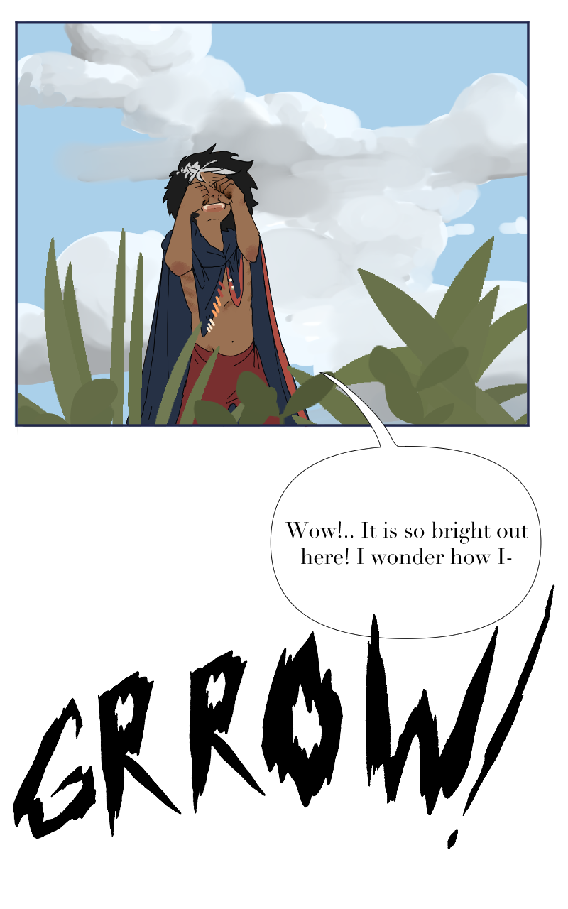 Hello! We finally got out of that cave. I was so excited to stop drawing all of that shading, lol. Which you may have noticed with my drawing quality- sorry-