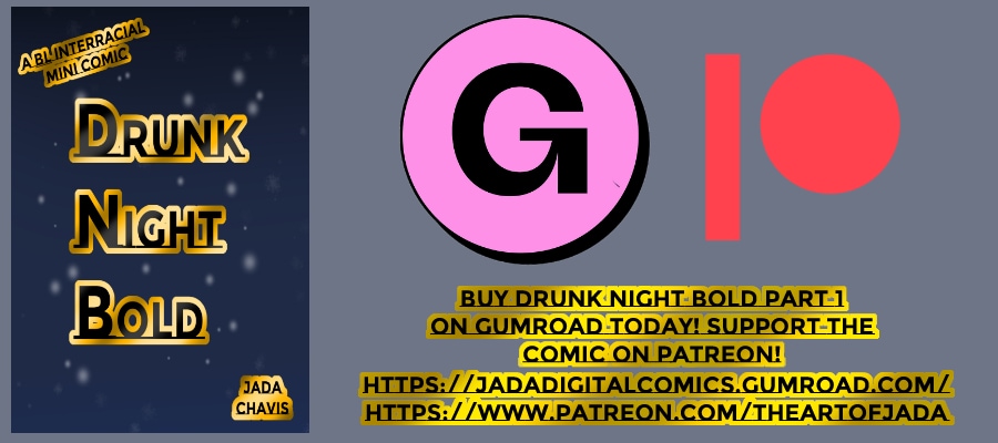 Thanks for reading Drunk Night Bold! Considering supporting this comic and other projects such as Luv of Underdogs on patreon and follow me on other social platforms such as Instagram, tiktok, and twitter. Links can be found here on my linktree: https://linktr.ee/theartofjada