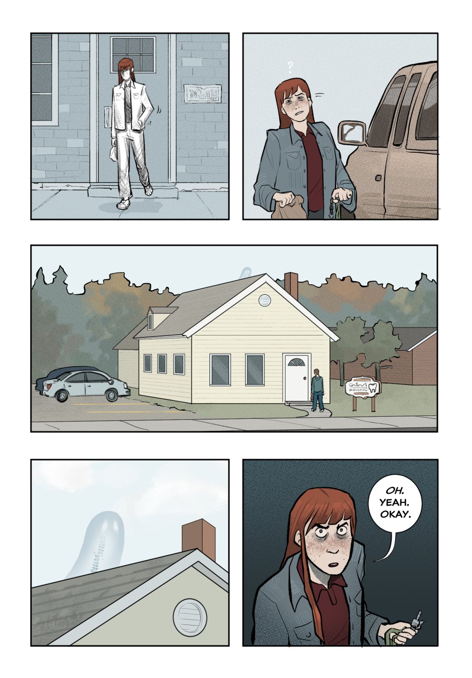 Do the glowing spots on ghosts signify their cause of death? The one in the shower had a crack on their head, the one in the gas station had a glowing heart (so heart failure of some sort?), and this one has a broken spine. That, paired with the traditional bedsheet ghost form is a really cool design choice! I adore it!