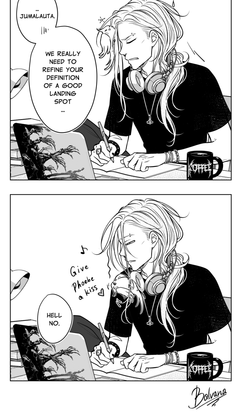 The actual manga behind this metal band is in the making at this very moment, but I thought this is a nice and fun way to meet the characters and witness their shenanigans :)