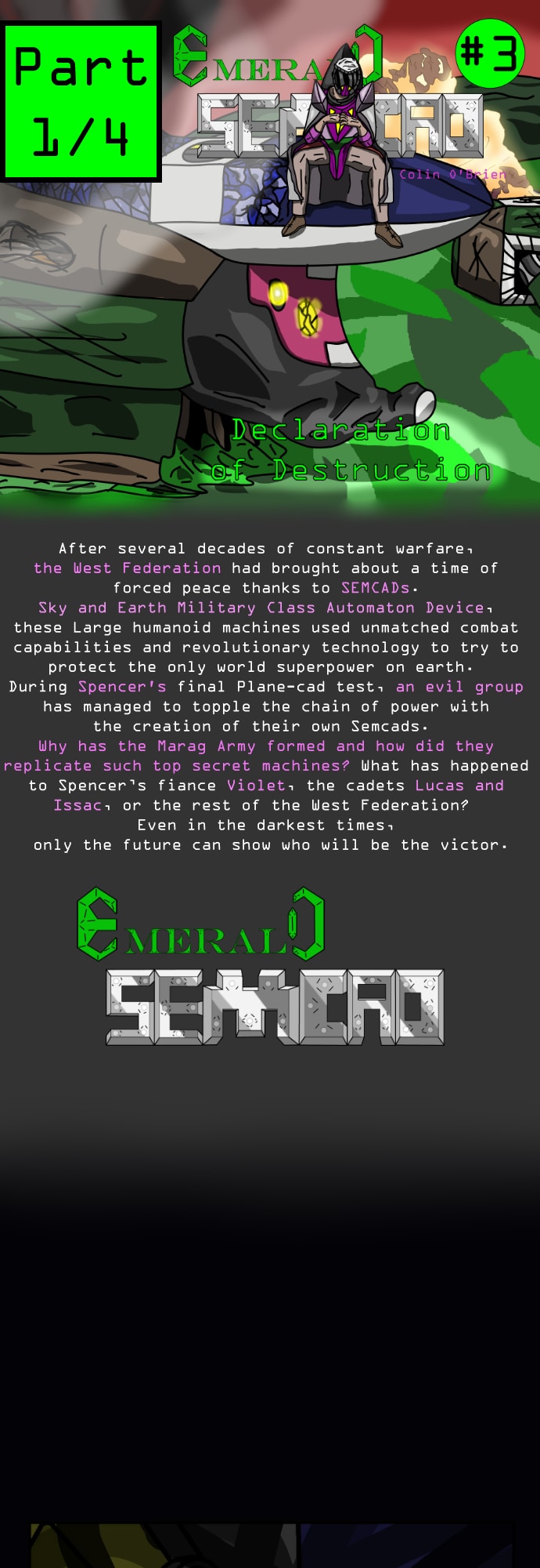 The third chapter is finally here! As I've said before I think this is my best chapter overall in terms of story and art. I hope you enjoy it as much as I do an check back on it next week. P.S. I took out the words "Emerald Semcad" in the title of each episode, it felt repetitive and made the title to long.