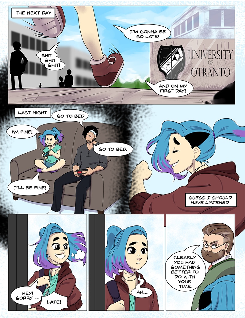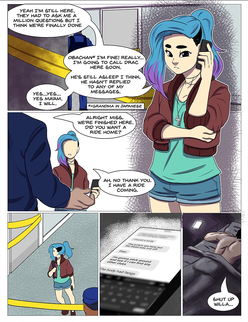 Willa is beginning her first year at a public college, but things go south when she makes a gruesome discovery on campus. (Those Who Sleep will have weekly updates until it catches up to the current pages!)