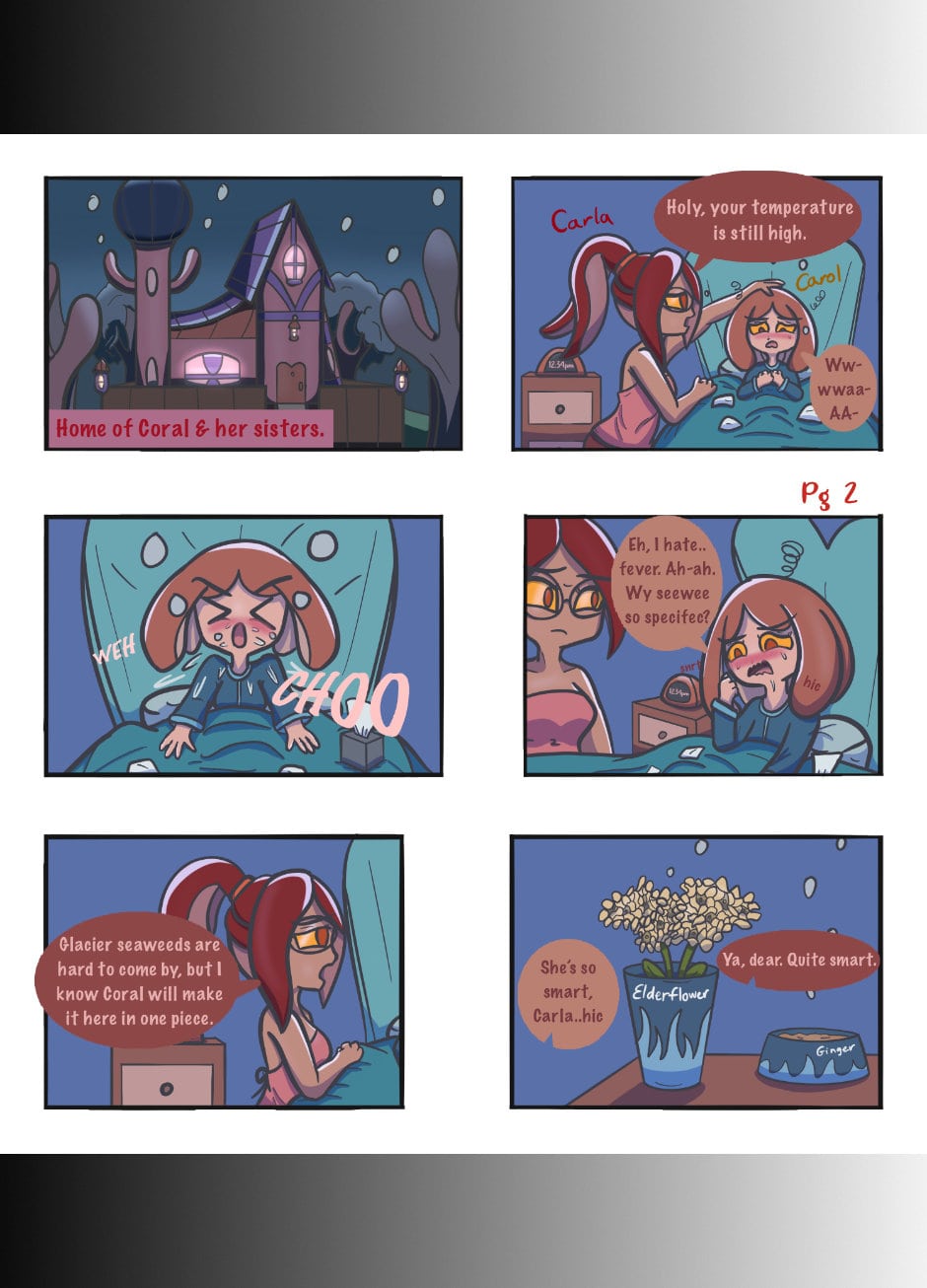 Coral's little sister, Carol, is sick, so she goes out to search for a rare ingredient, the Glacier Seaweed. It's required to create a medical tea for the flu.