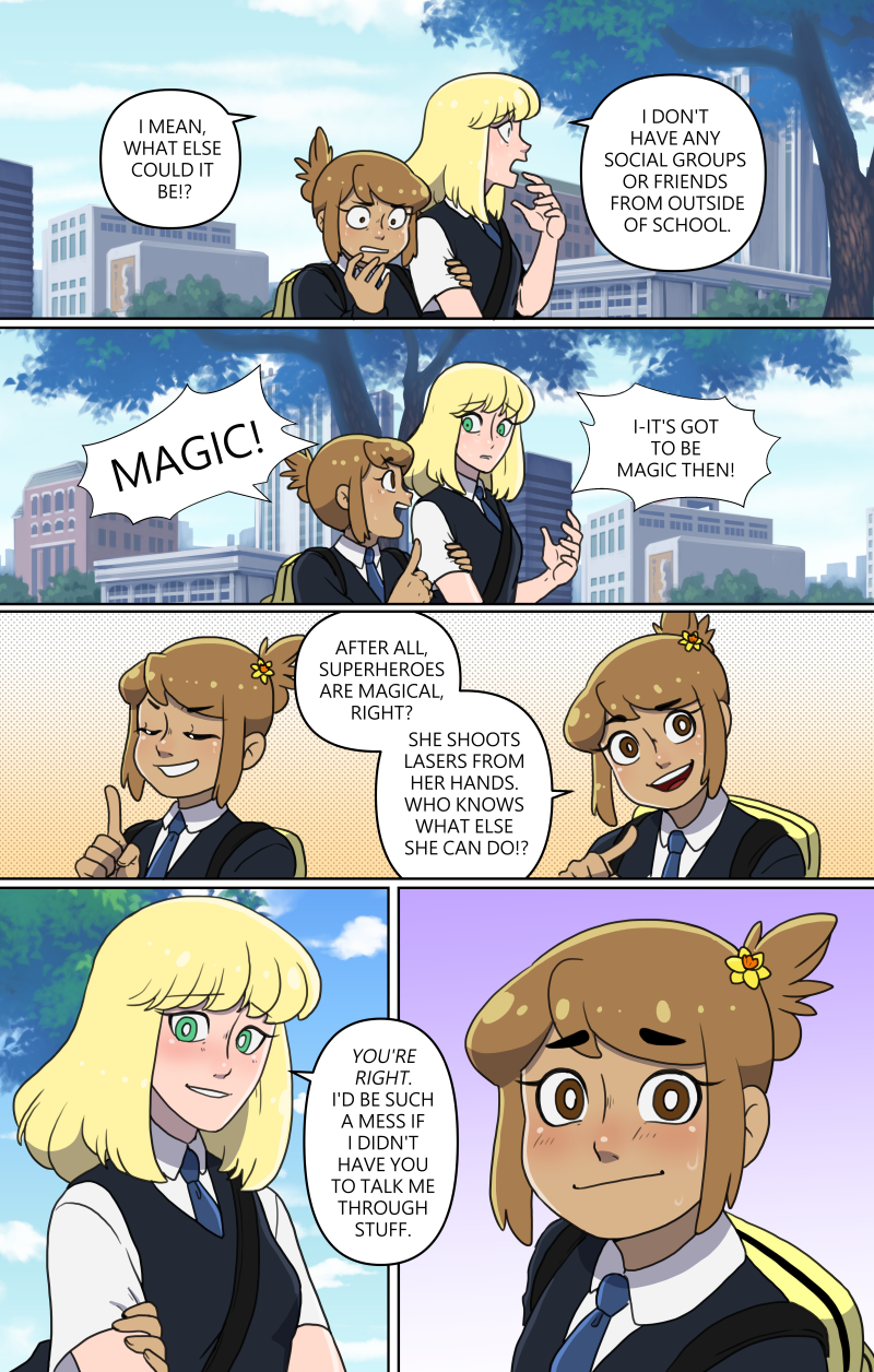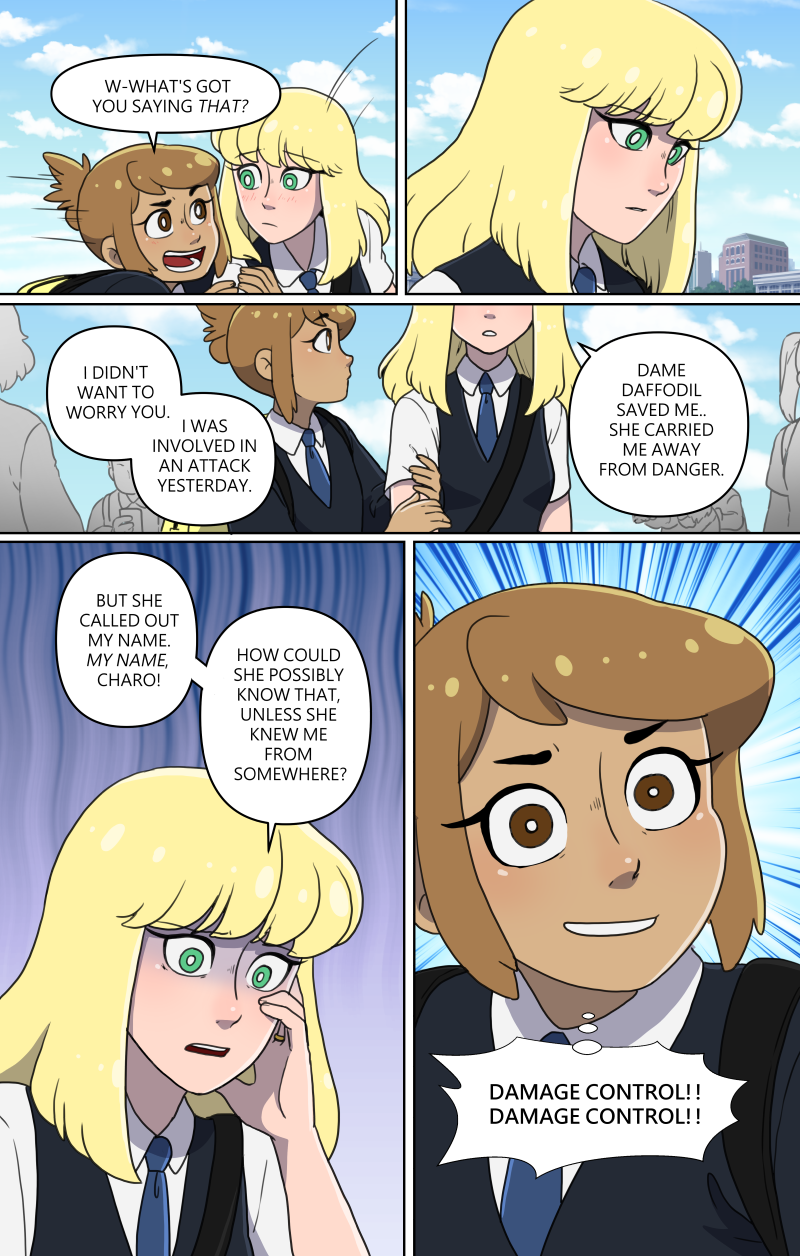 Charo is a hyperactive teen with the dream to be a magical girl like in her favourite shows. So when her attention is drawn to a tiny hairpin, Charo's dream may very well come true. The hard part is figuring out how to actually be a magical girl while making sure she doesn't worry her protective older brother and her very nervous girlfriend! LGBTQ+ representation Updates Monday and Friday on Patreon, and updates in batches sporadically here! Usually once a month!