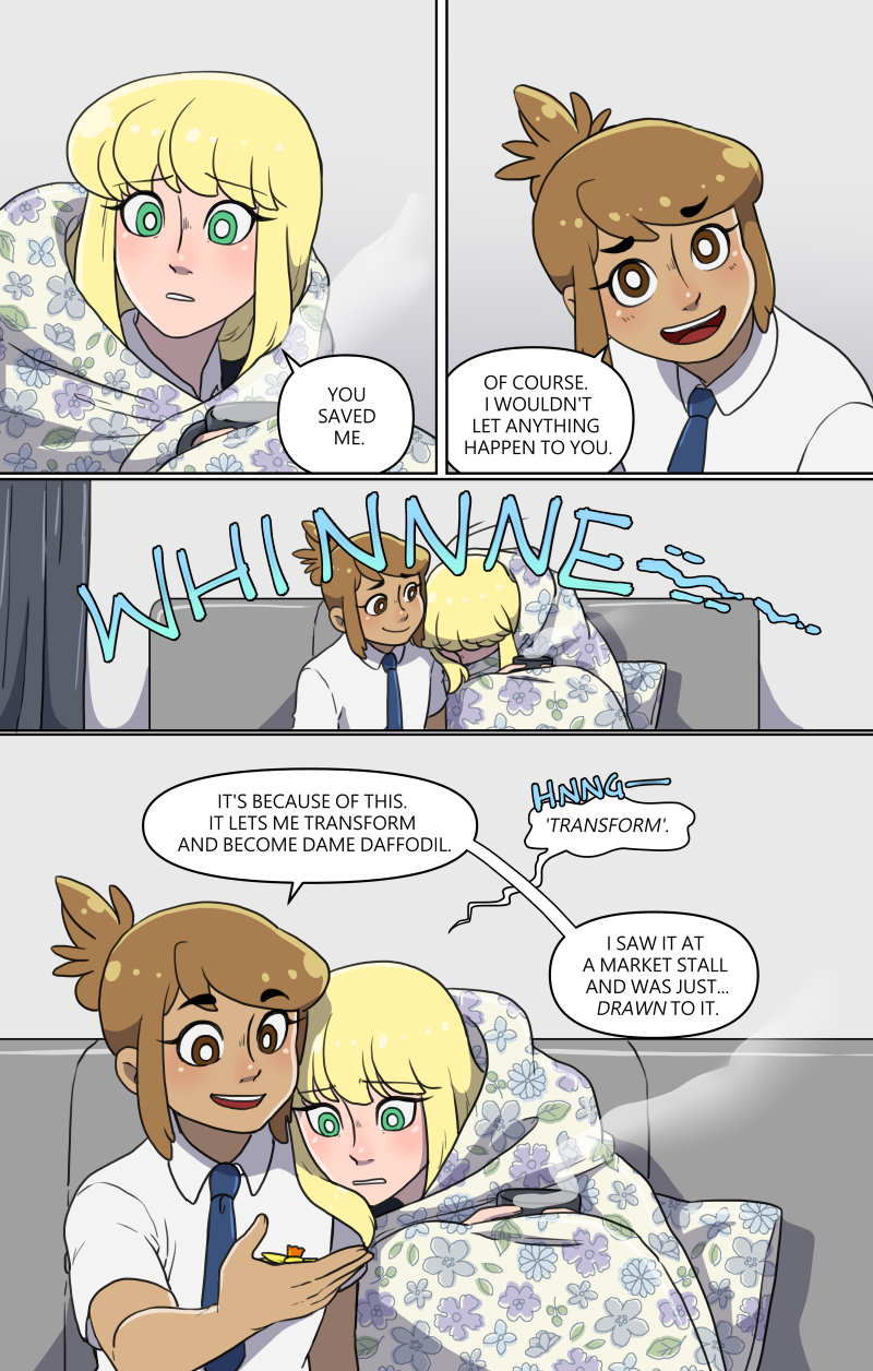 Charo is a hyperactive teen with the dream to be a magical girl like in her favourite shows. So when her attention is drawn to a tiny hairpin, Charo's dream may very well come true. The hard part is figuring out how to actually be a magical girl while making sure she doesn't worry her protective older brother and her very nervous girlfriend! LGBTQ+ representation Updates Monday and Friday on Patreon, and updates in batches sporadically here! Usually once a month!