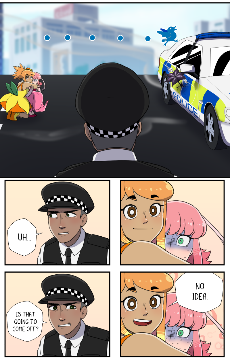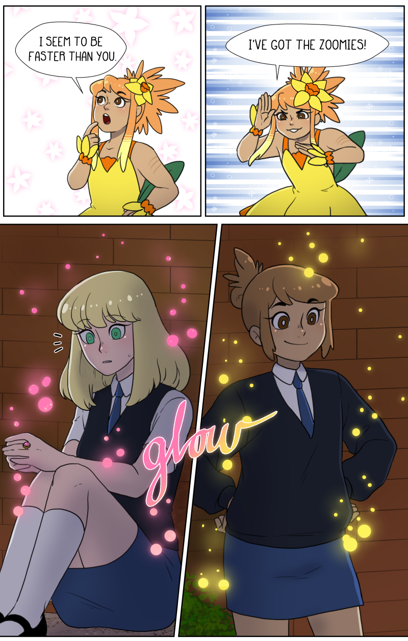 Charo is a hyperactive teen with the dream to be a magical girl like in her favourite shows. So when her attention is drawn to a tiny hairpin, Charo's dream may very well come true. The hard part is figuring out how to actually be a magical girl while making sure she doesn't worry her protective older brother and her very nervous girlfriend! LGBTQ+ representation Updates Monday and Friday on Patreon, and updates in batches sporadically here! Usually once a month!